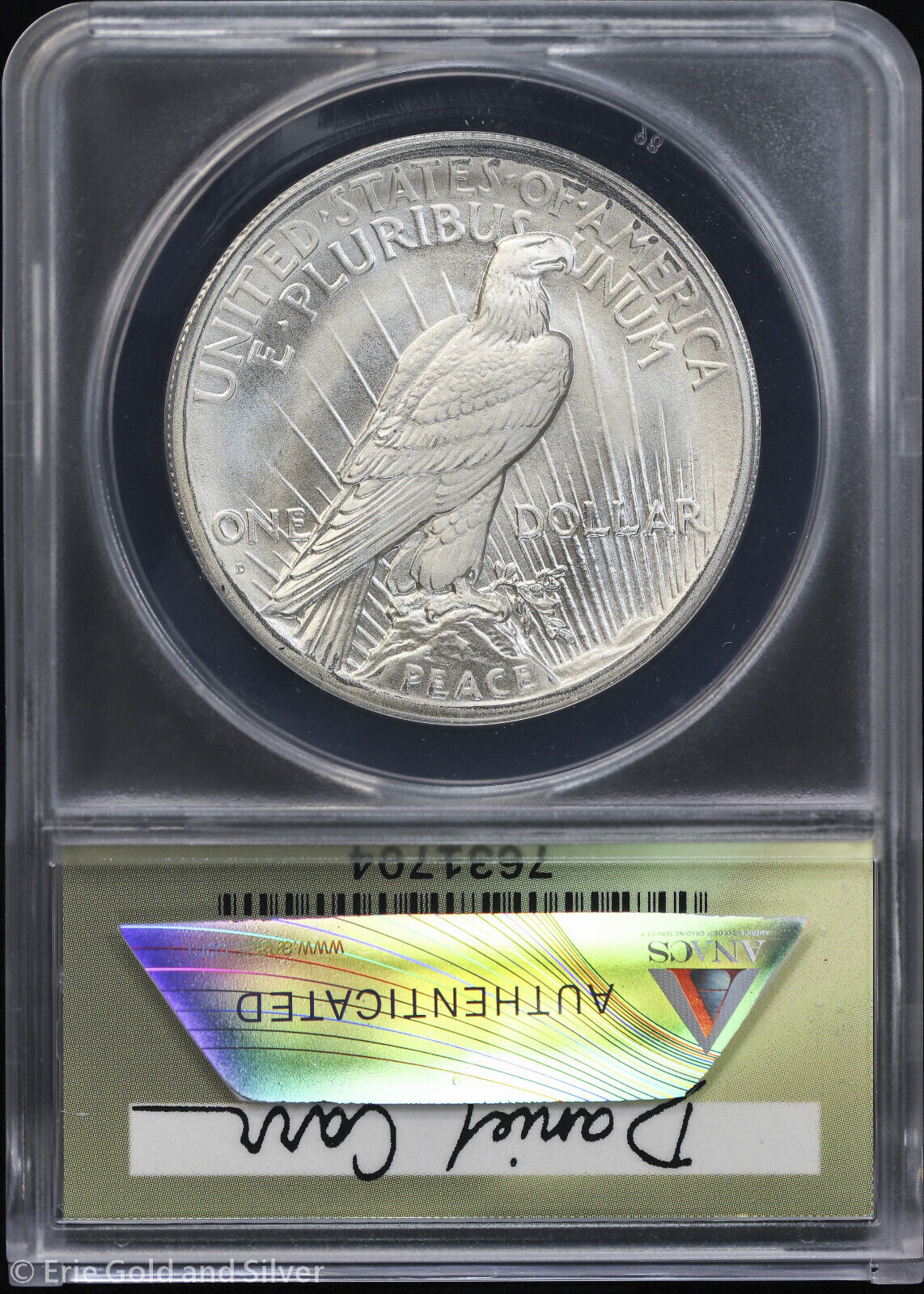 1932-D Dan Carr High Relief Peace Dollar Overstrike Token ANACS MS 70 | w/ COA