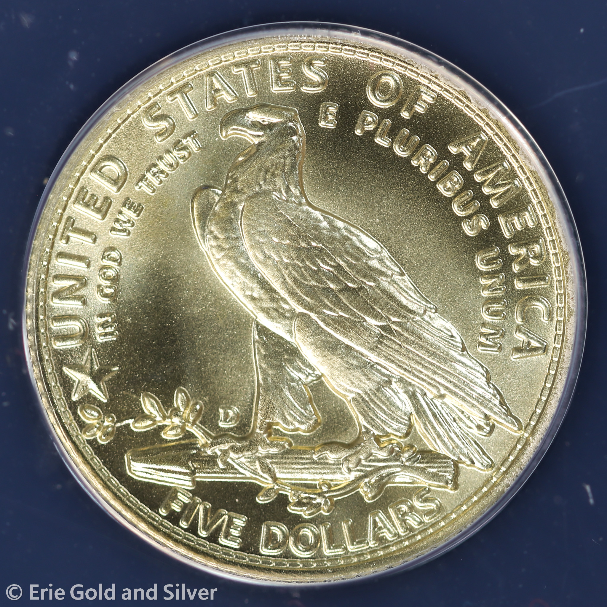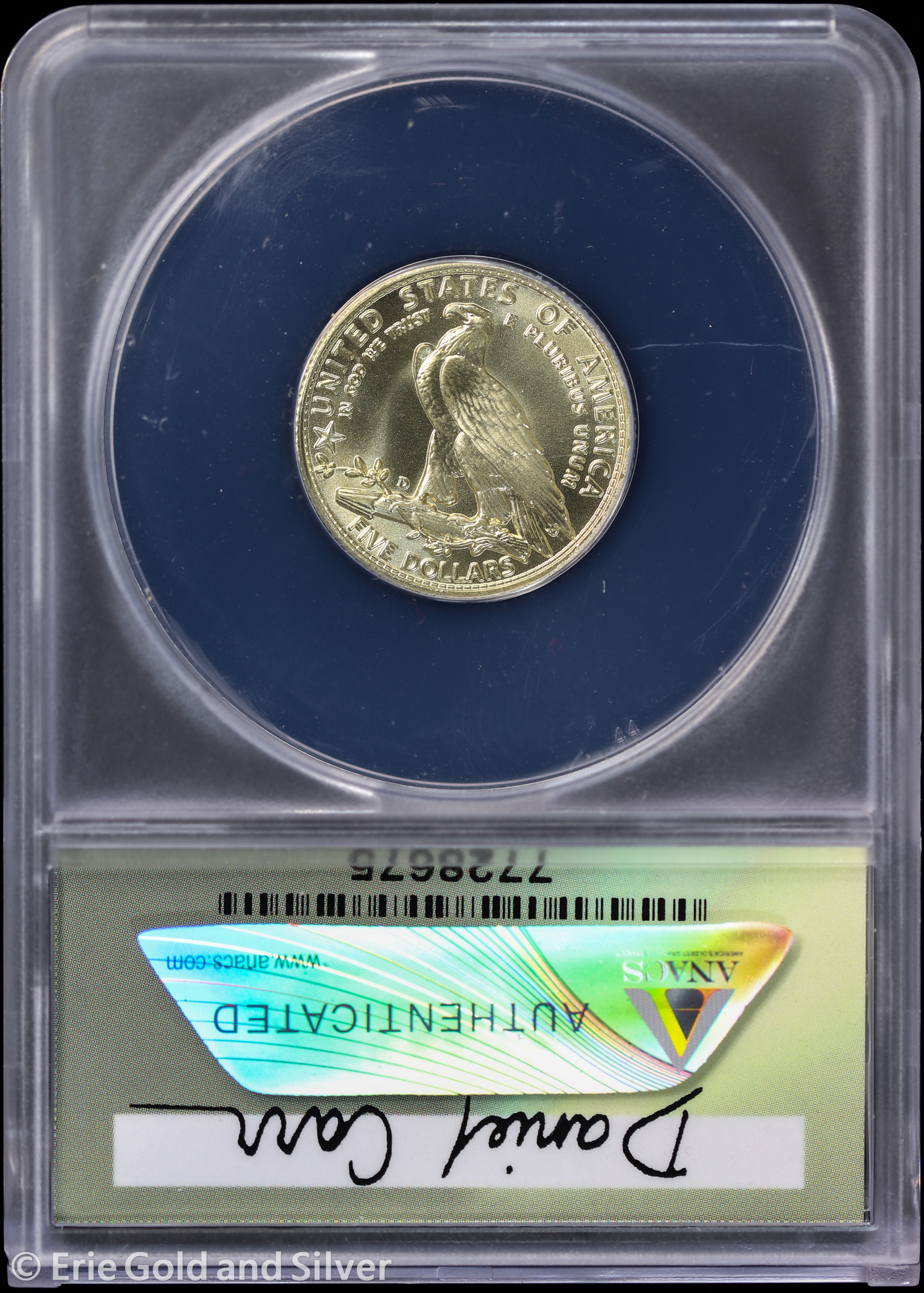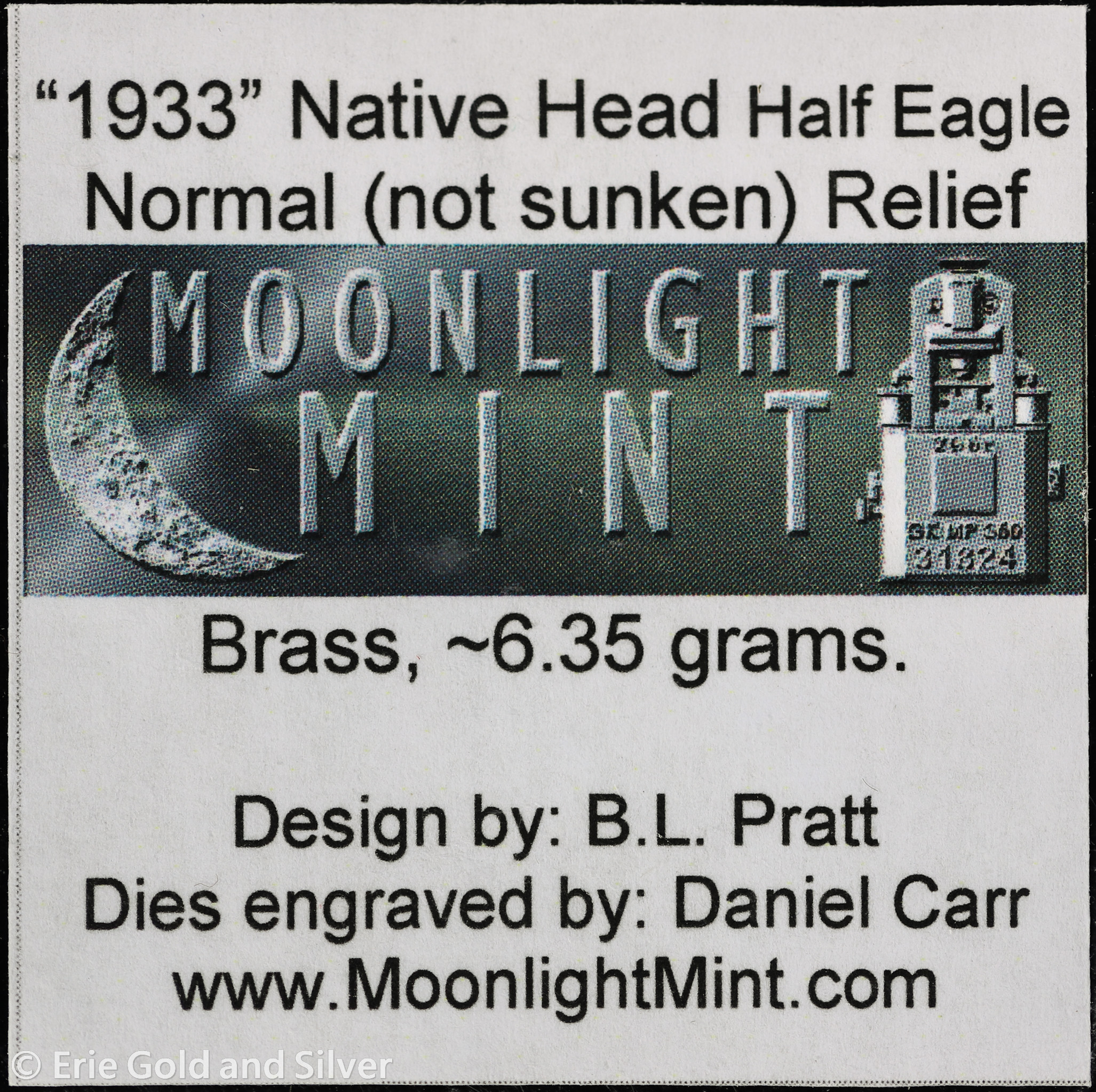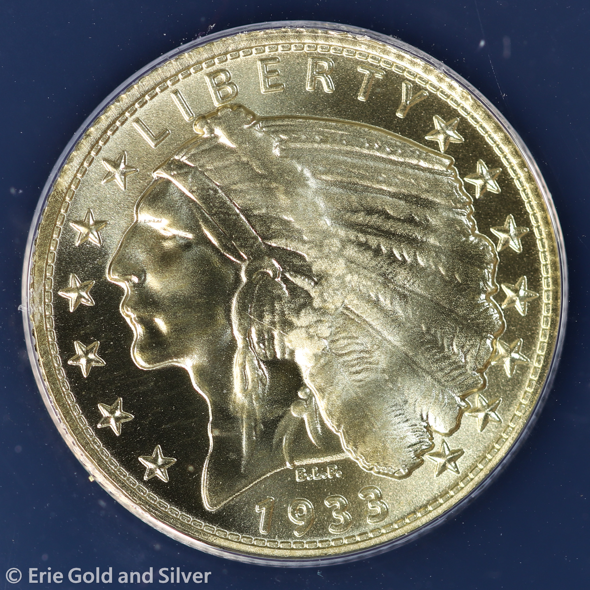 For sale is a “1933”-D $5 Dan Carr Native Head Half Eagle Brass Token w/ COA. Certified / graded by ANACS at MS 70.
