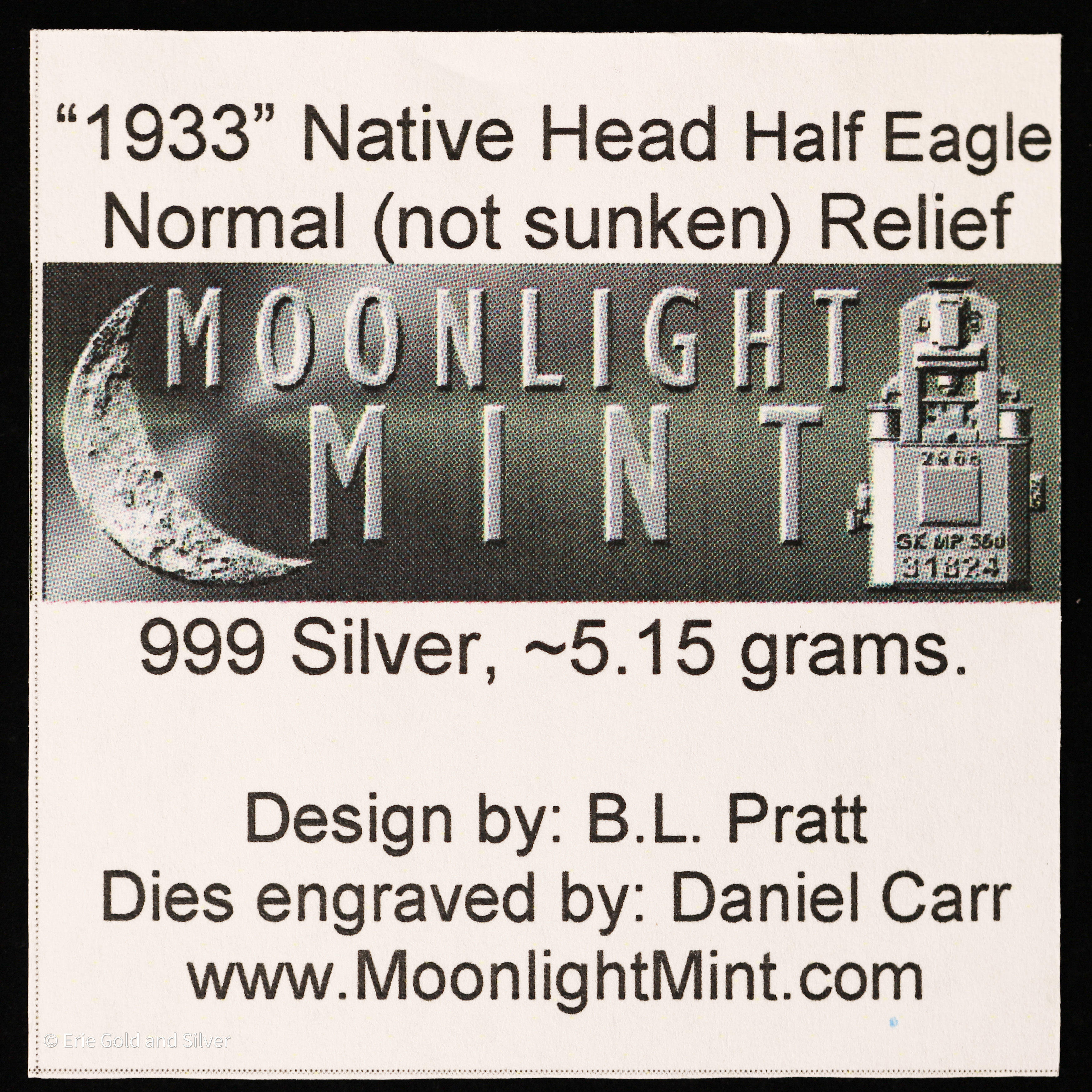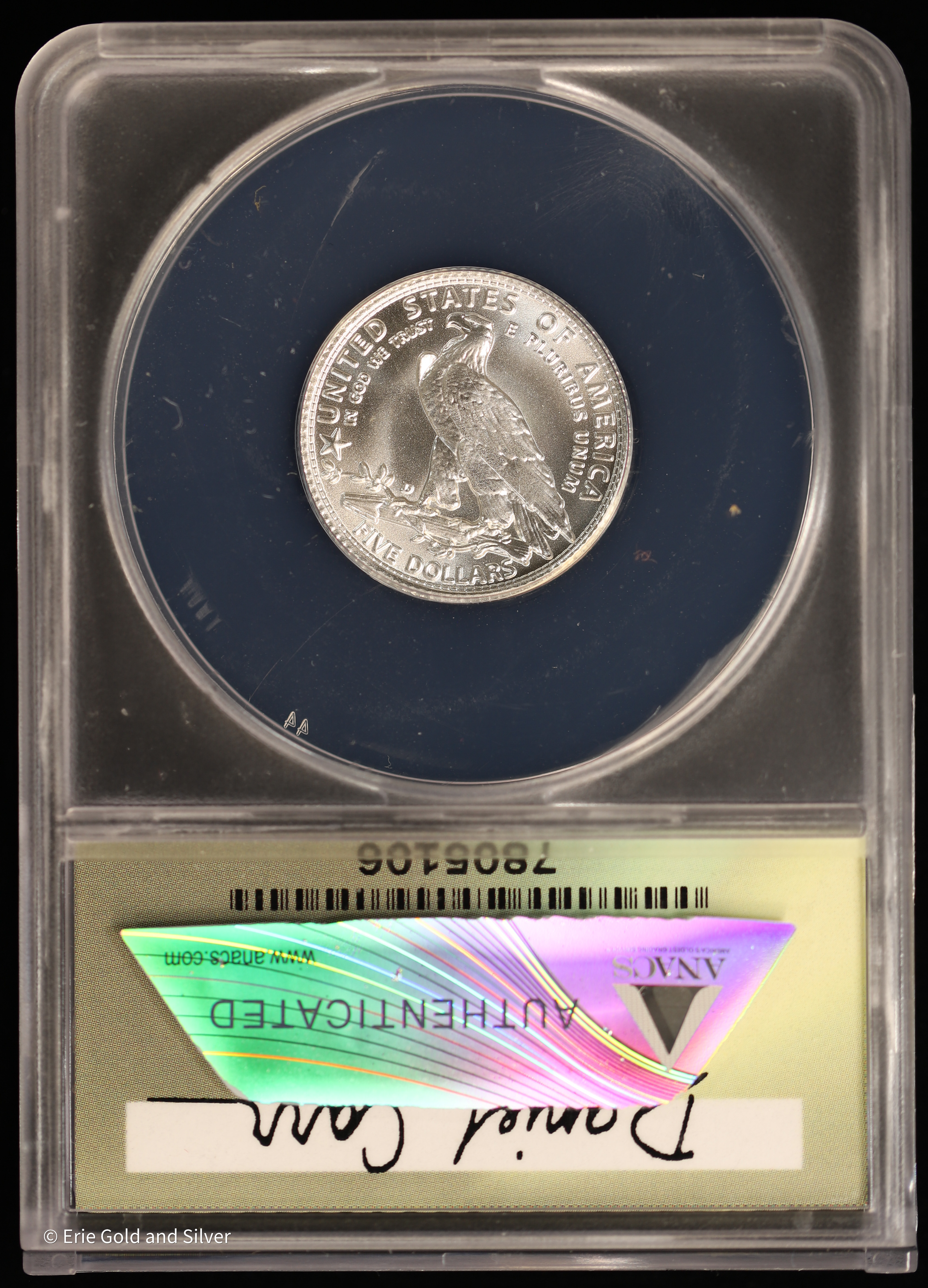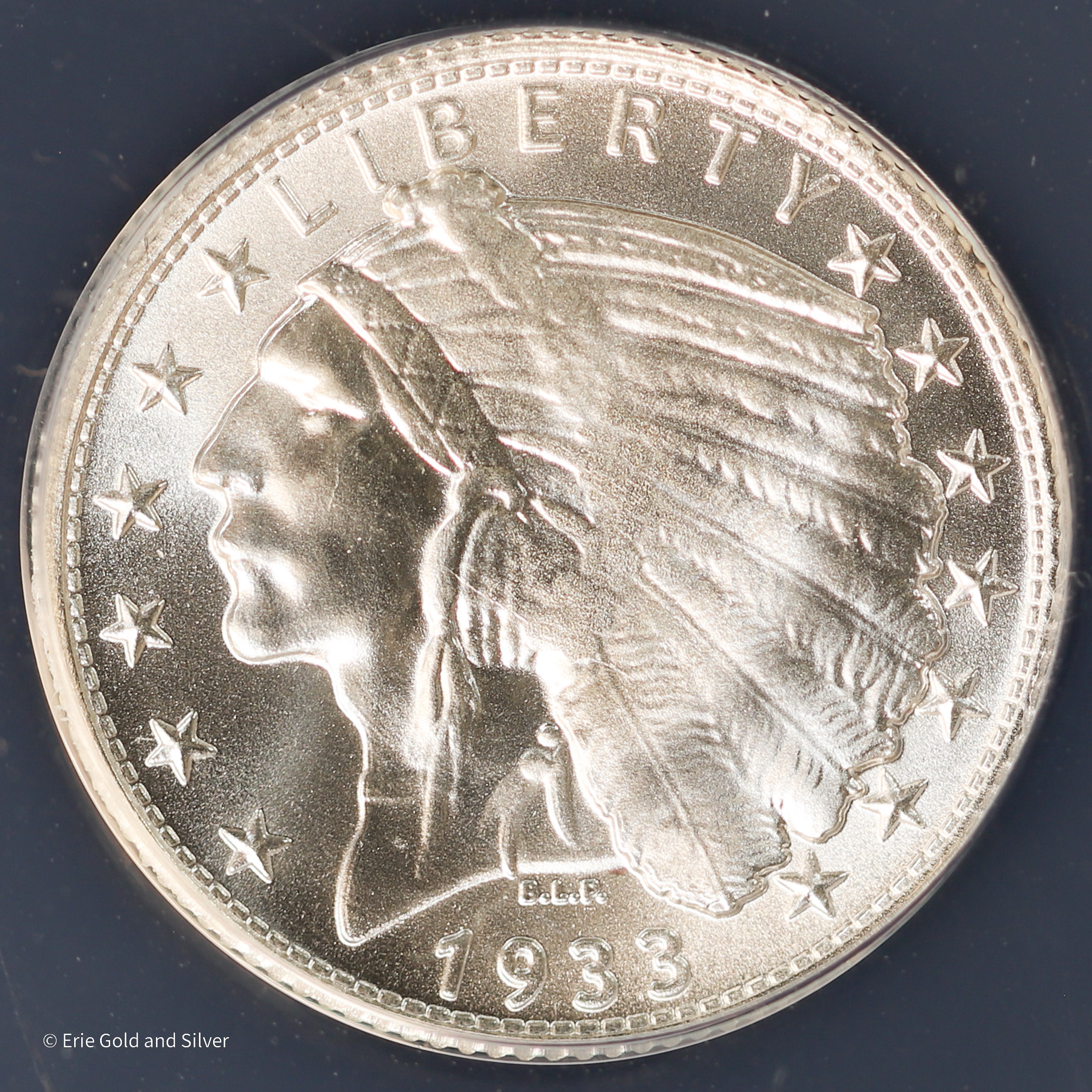 For sale is a 1933-D Dan Carr $5 Native Head Normal Relief Silver Token. Graded / Certified by ANACS at MS 69.
