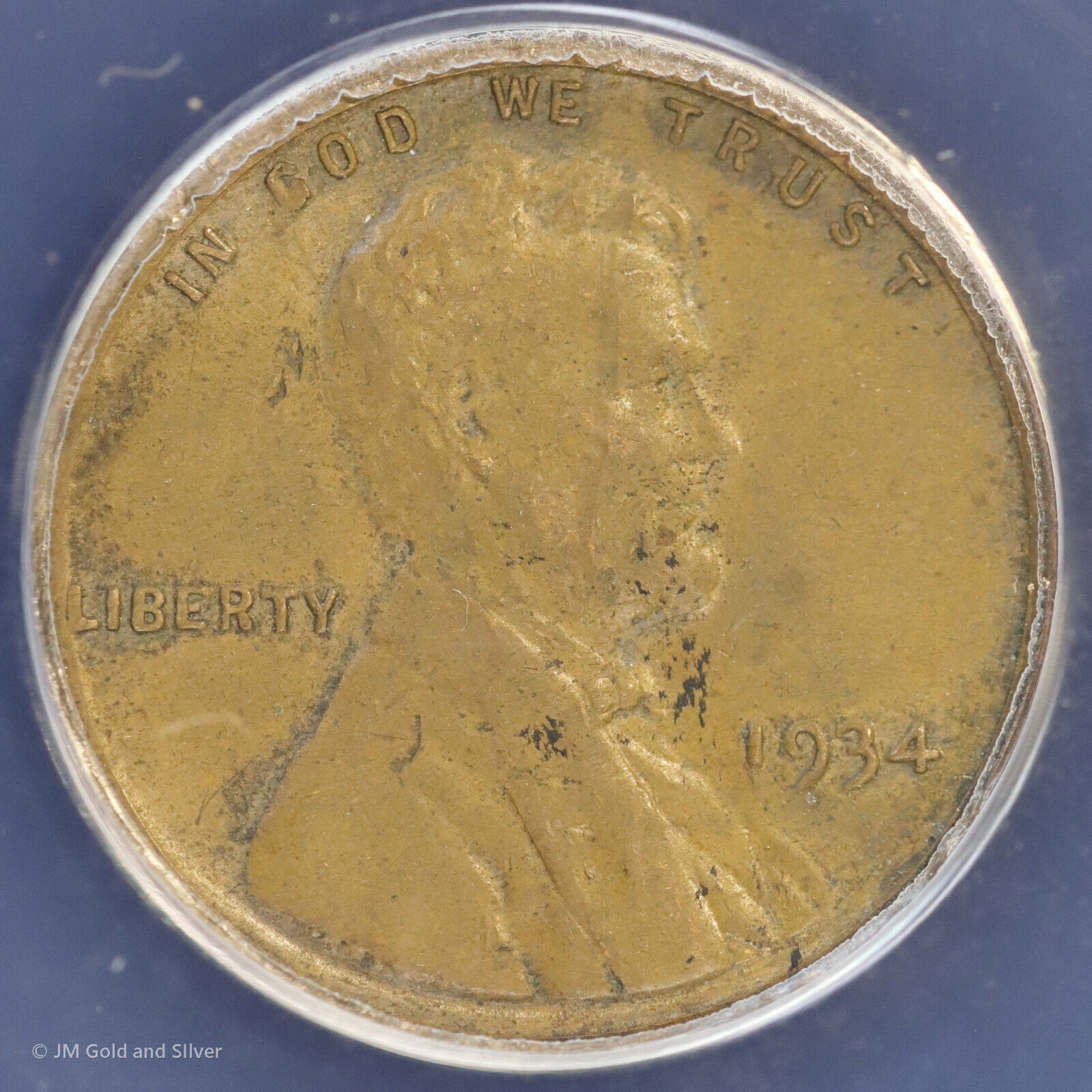 1934 1c Lincoln Wheat Cent ANACS AU 50 Details | Ex-Lucky Piece Holder