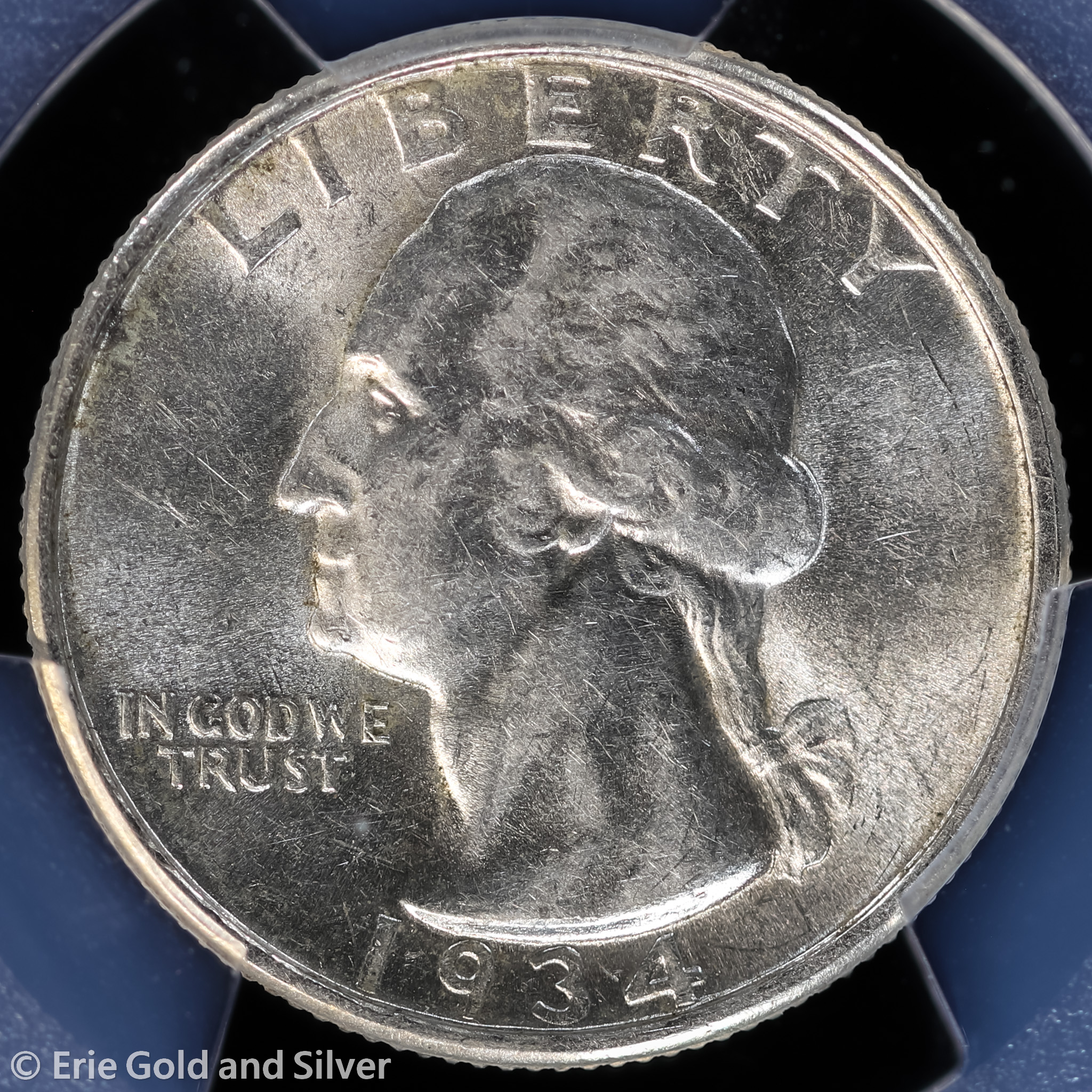 For sale is a 1934-D Silver Washington Quarter. Certified / graded by PCGS at AU 53.