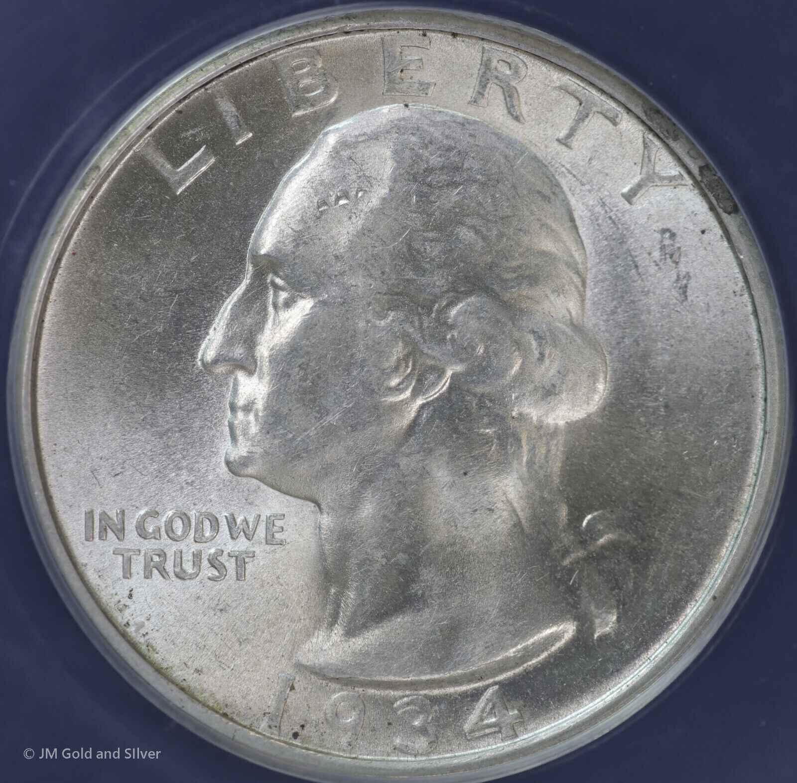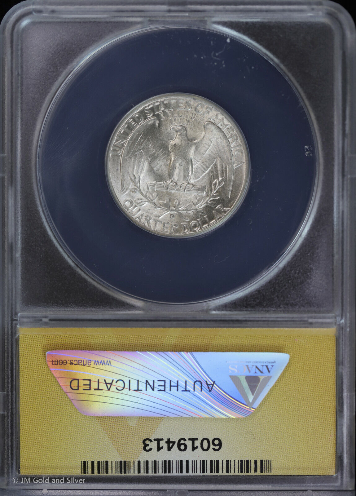 1934-D Silver Washington Quarter 25C ANACS AU 58 (About Uncirculated) Denver