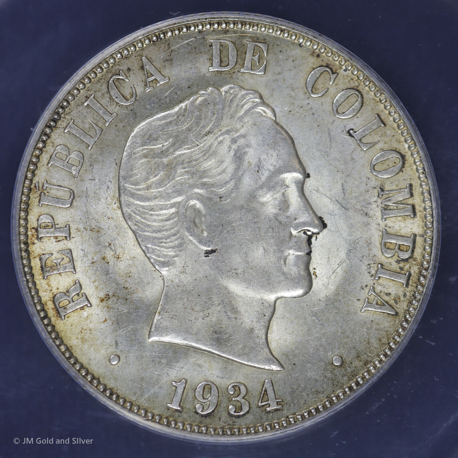 1934 S Colombia 50 Centavos ANACS MS 63 | Struck at San Francisco Mint