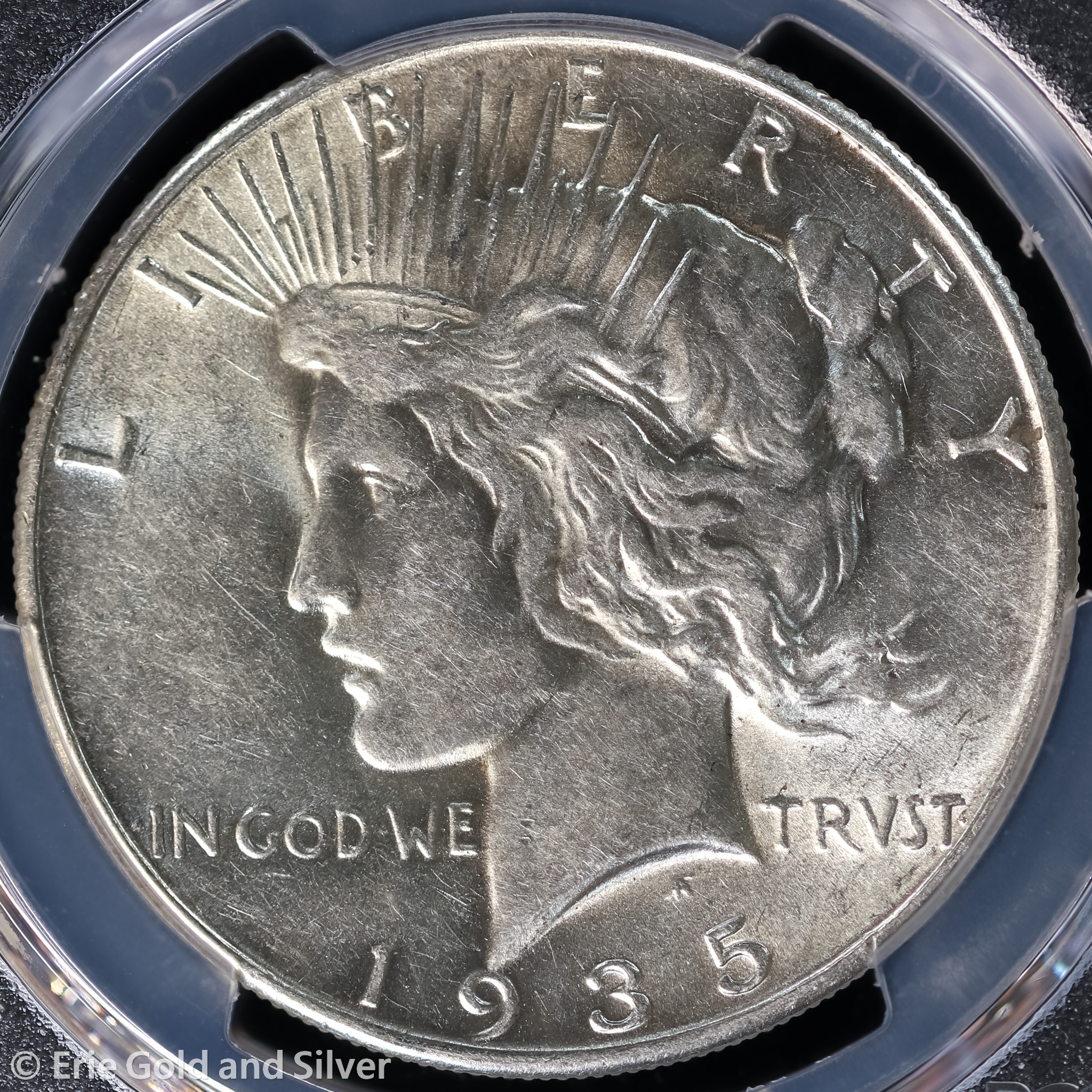 For sale is a 1935-P Peace Silver Dollar. Certified / graded by PCGS at AU 55.
