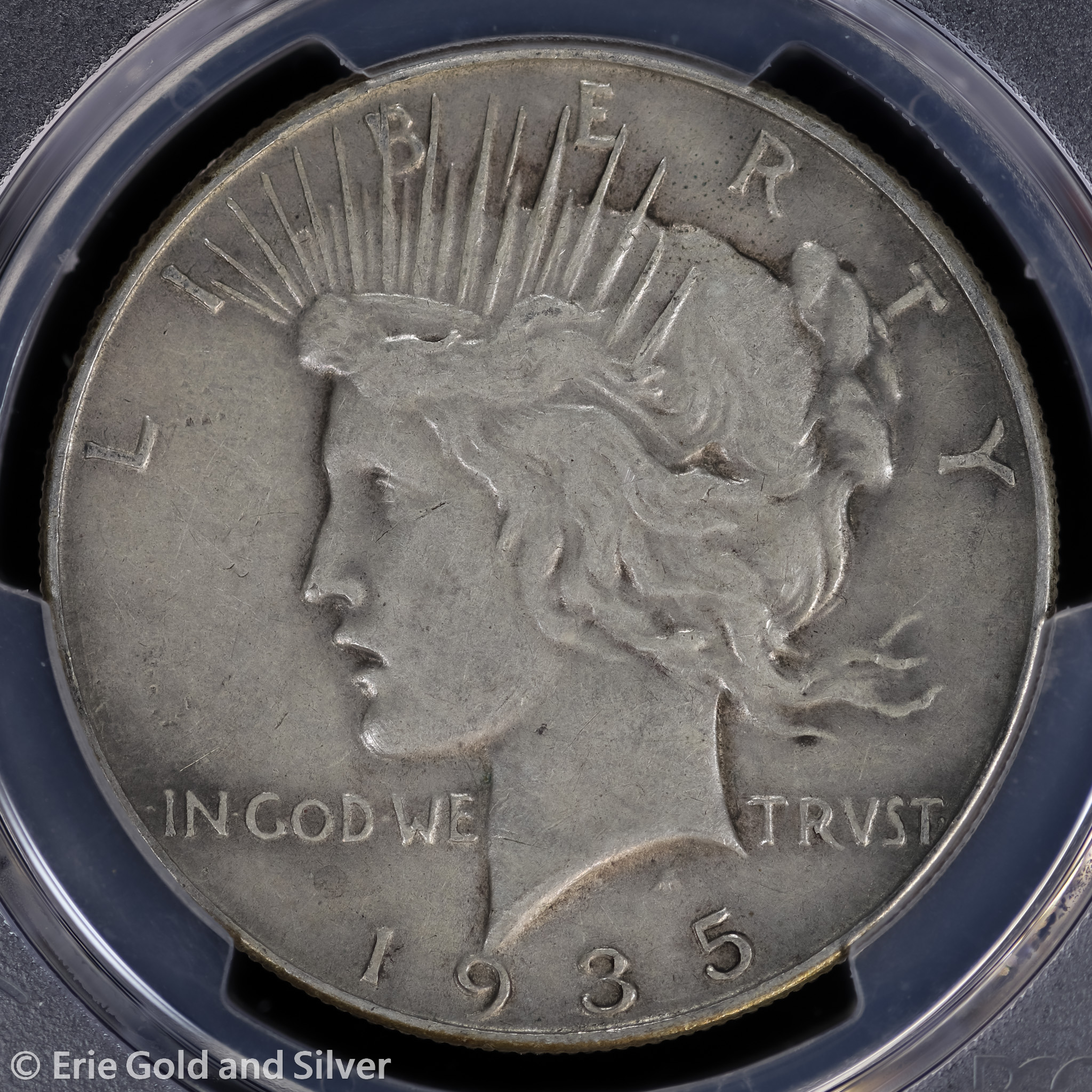For sale is a 1935-P Peace Silver Dollar. Certified / graded by PCGS at VF 30.