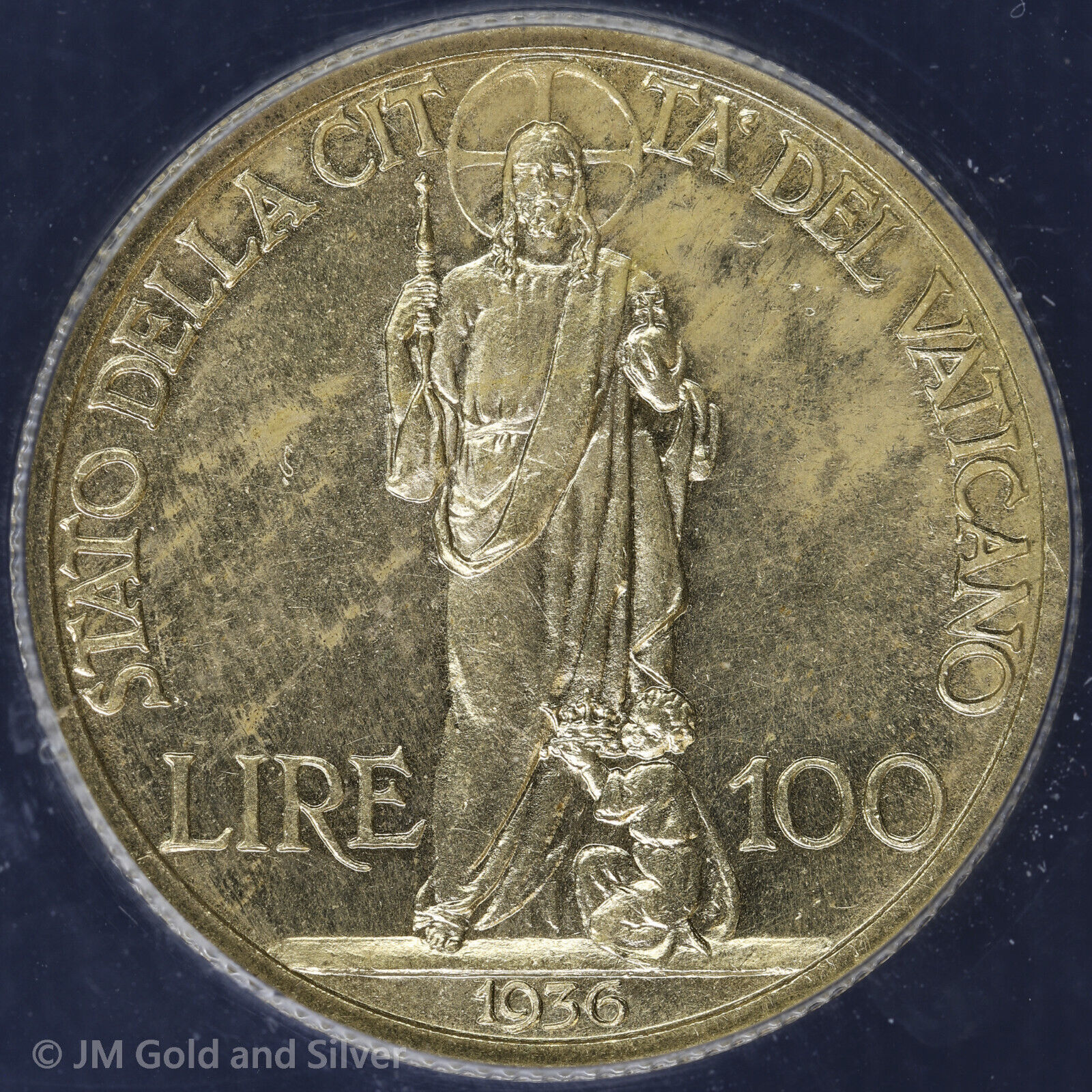 1936 100L Vatican City Gold 100 Lire ANACS MS 64 | Uncirculated UNC BU