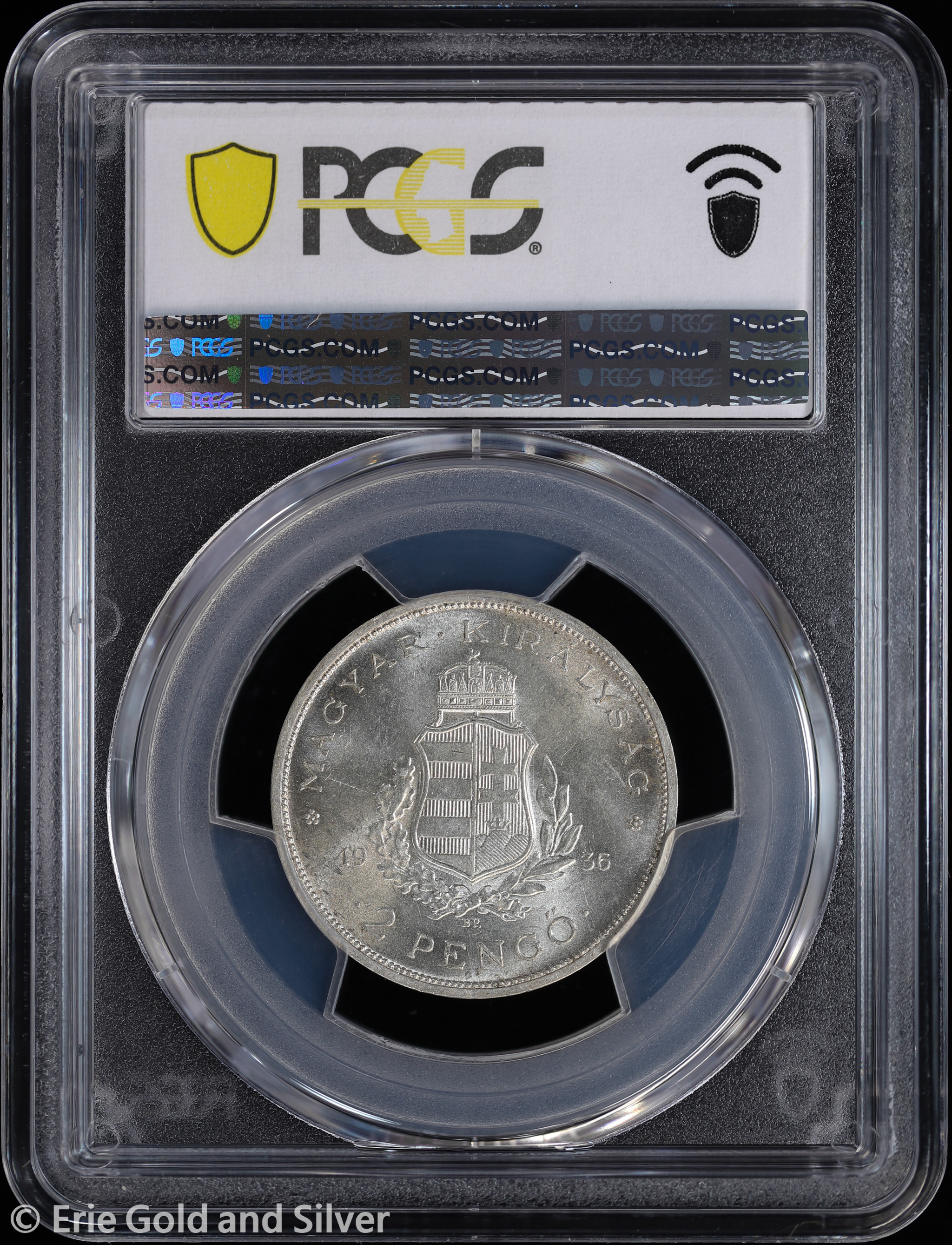 1936-BP Hungary Silver Franz von Liszt 2 Pengő PCGS MS 63