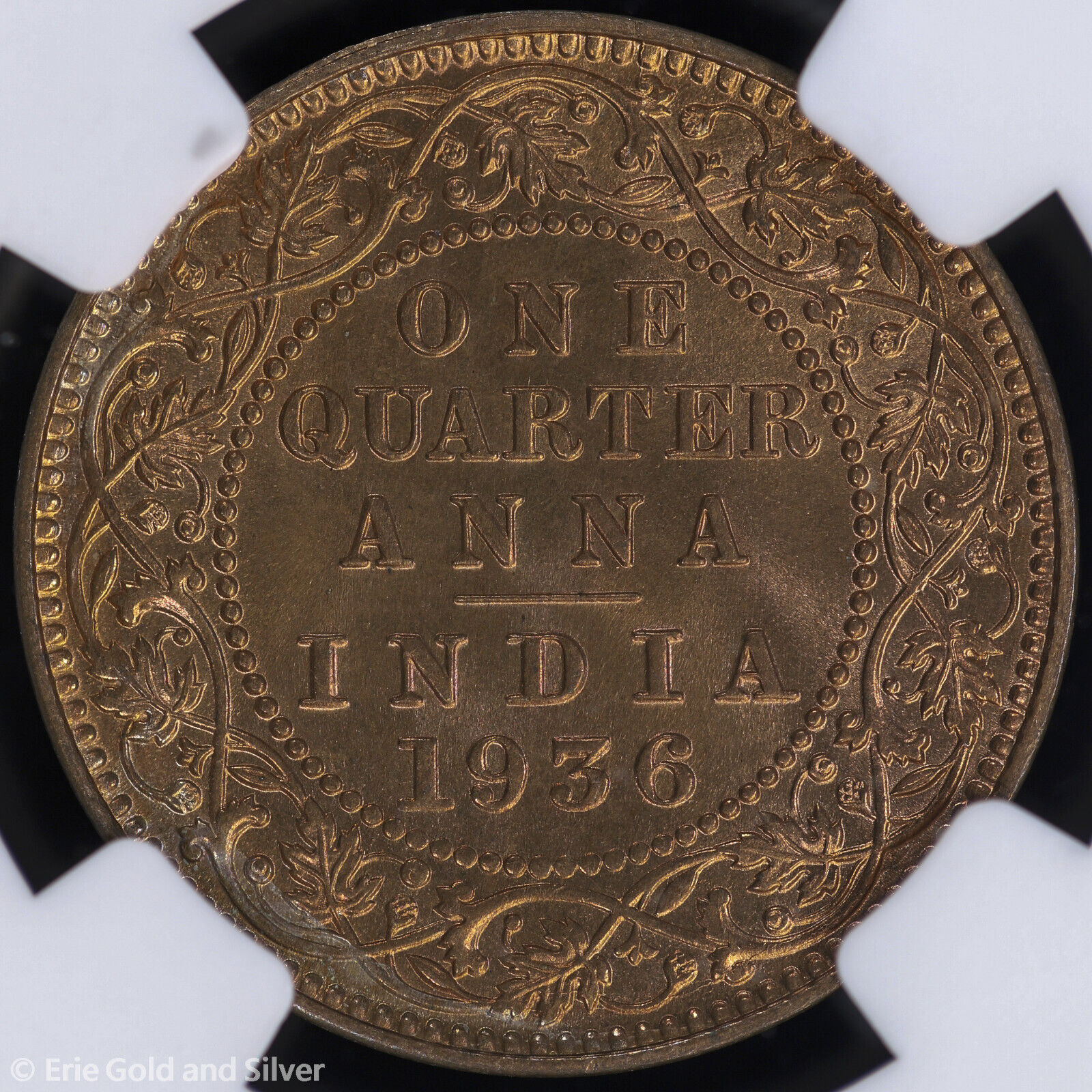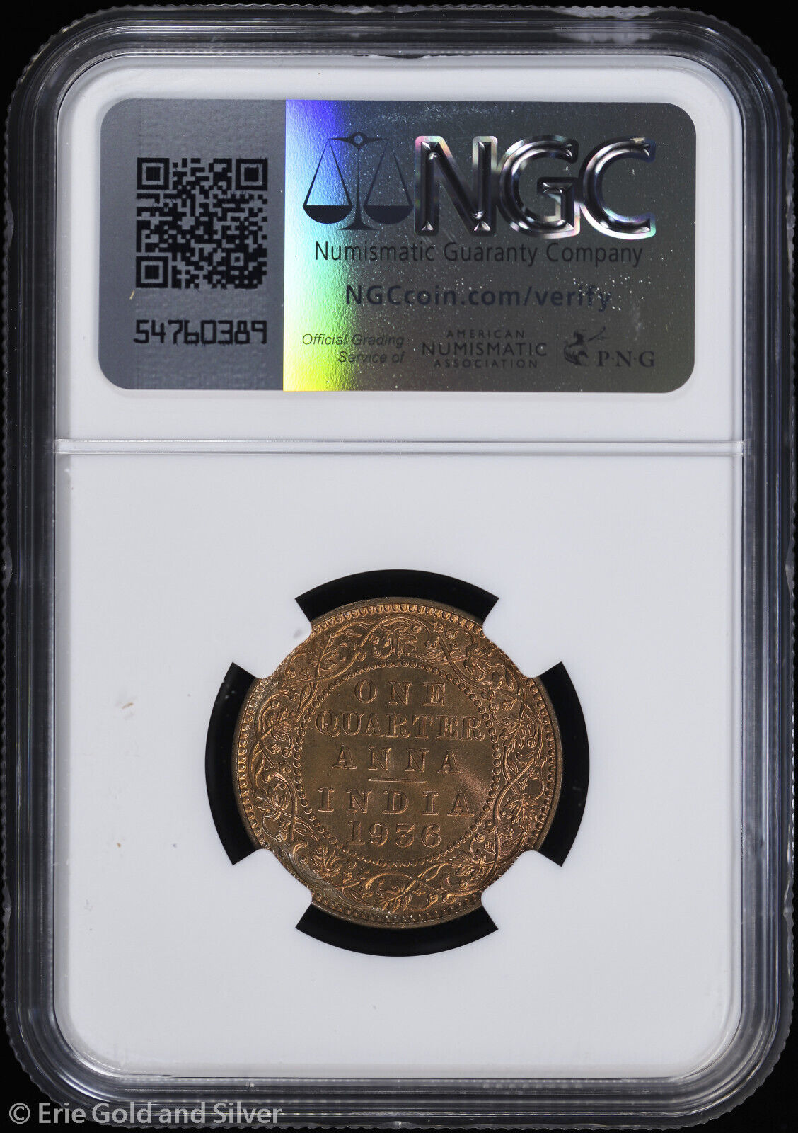 1936-(C) India 1/4 Anna NGC MS 65 RB | Uncirculated UNC BU
