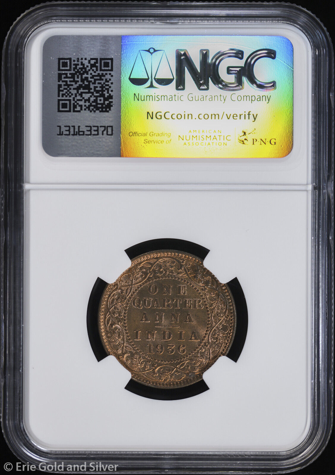 1936-(C) India 1/4 Anna NGC MS 65 RD | Uncirculated UNC BU