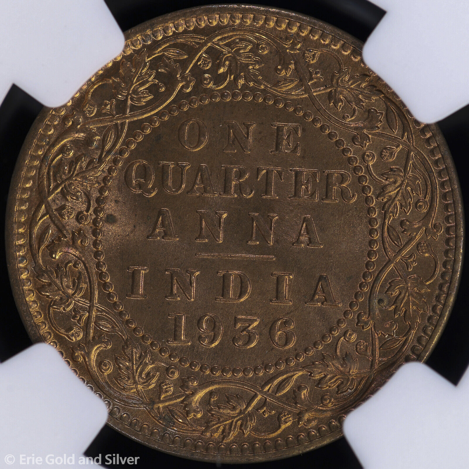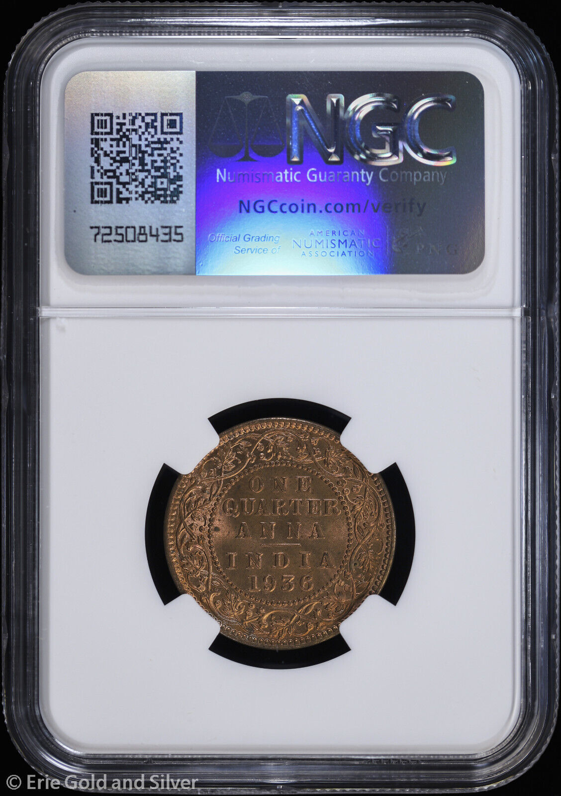 1936-(C) India 1/4 Anna NGC MS 66 RB | Uncirculated UNC BU