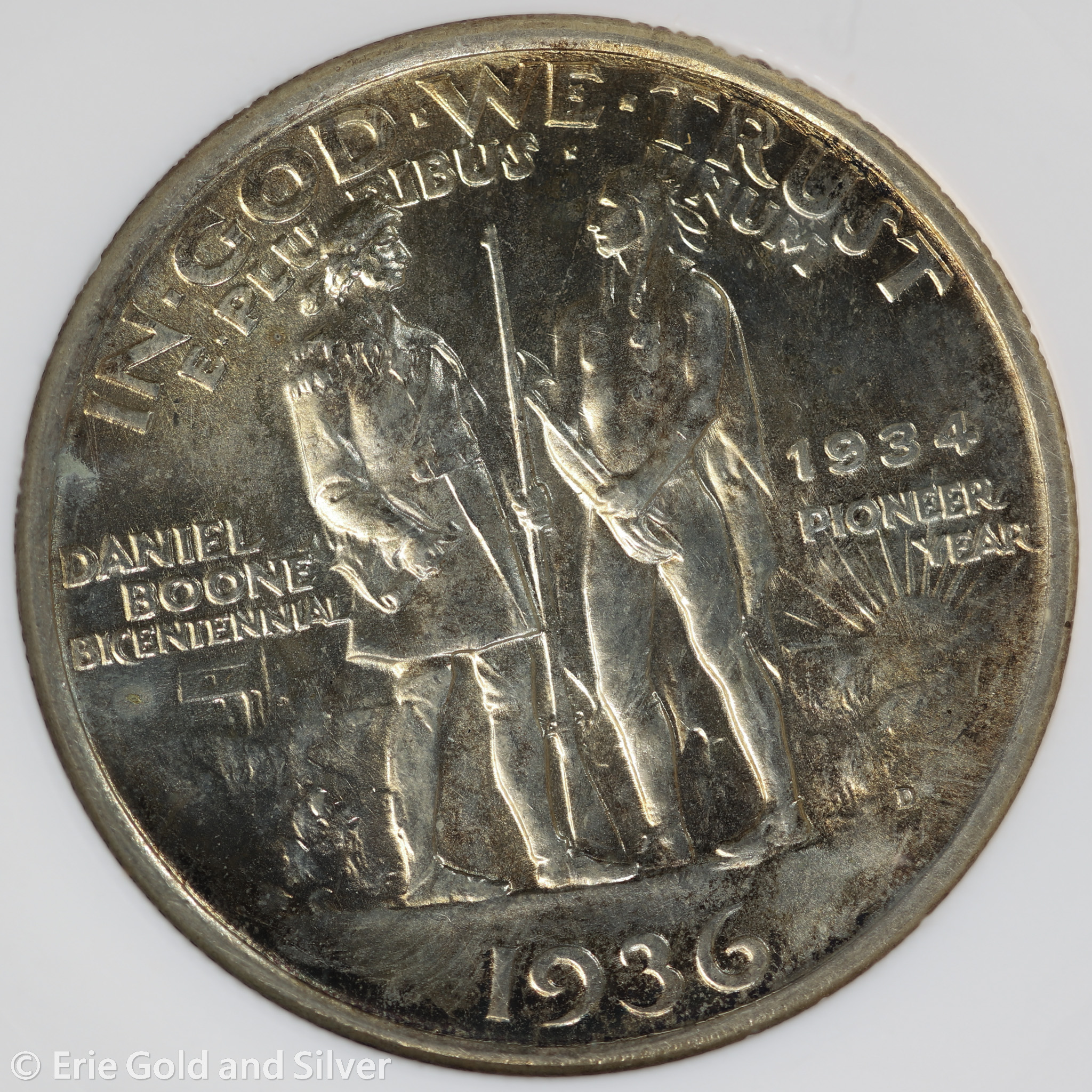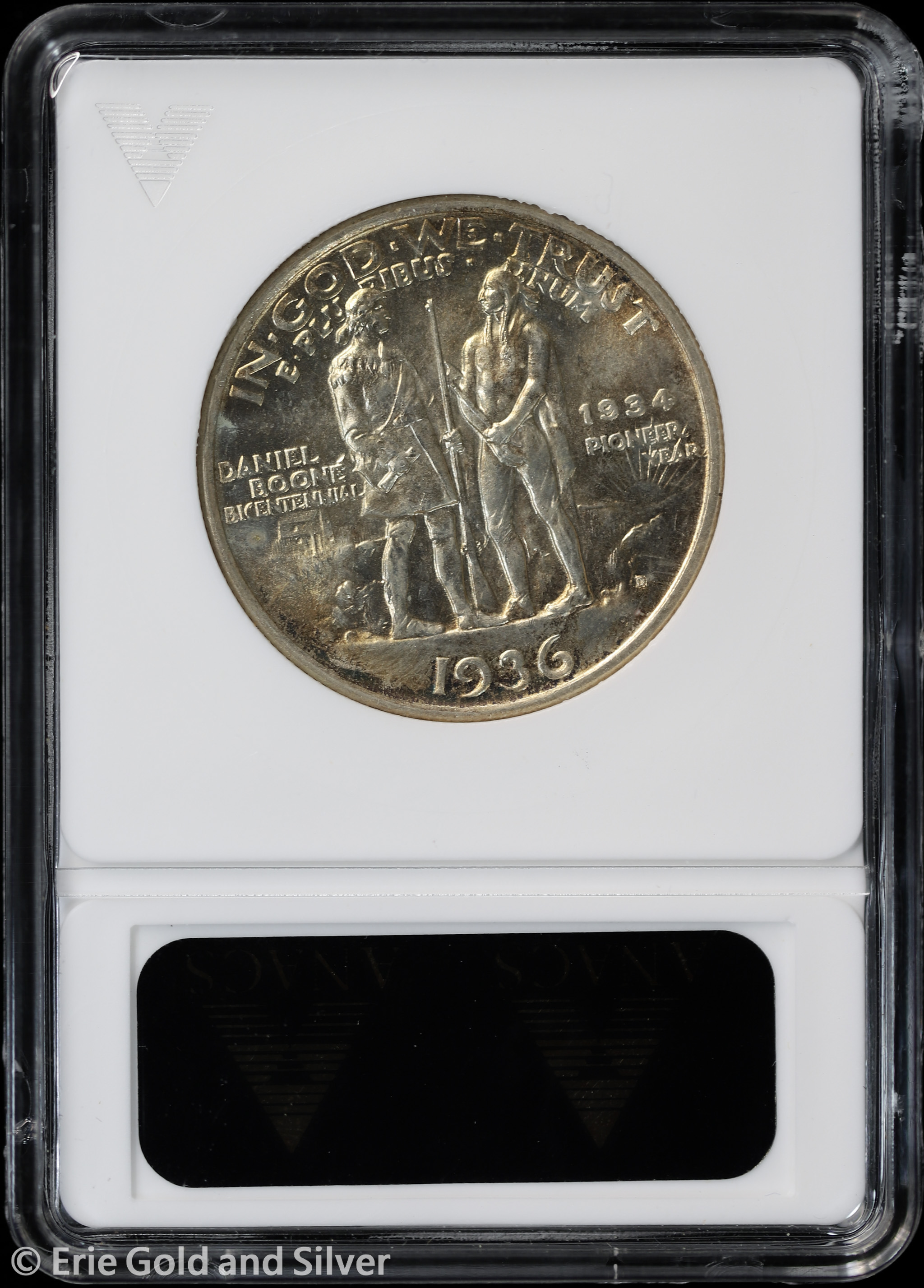 1936-D Daniel Boone Bicentennial Silver Commemorative Half Dollar ANACS MS 65 | Old Soap Box Holder