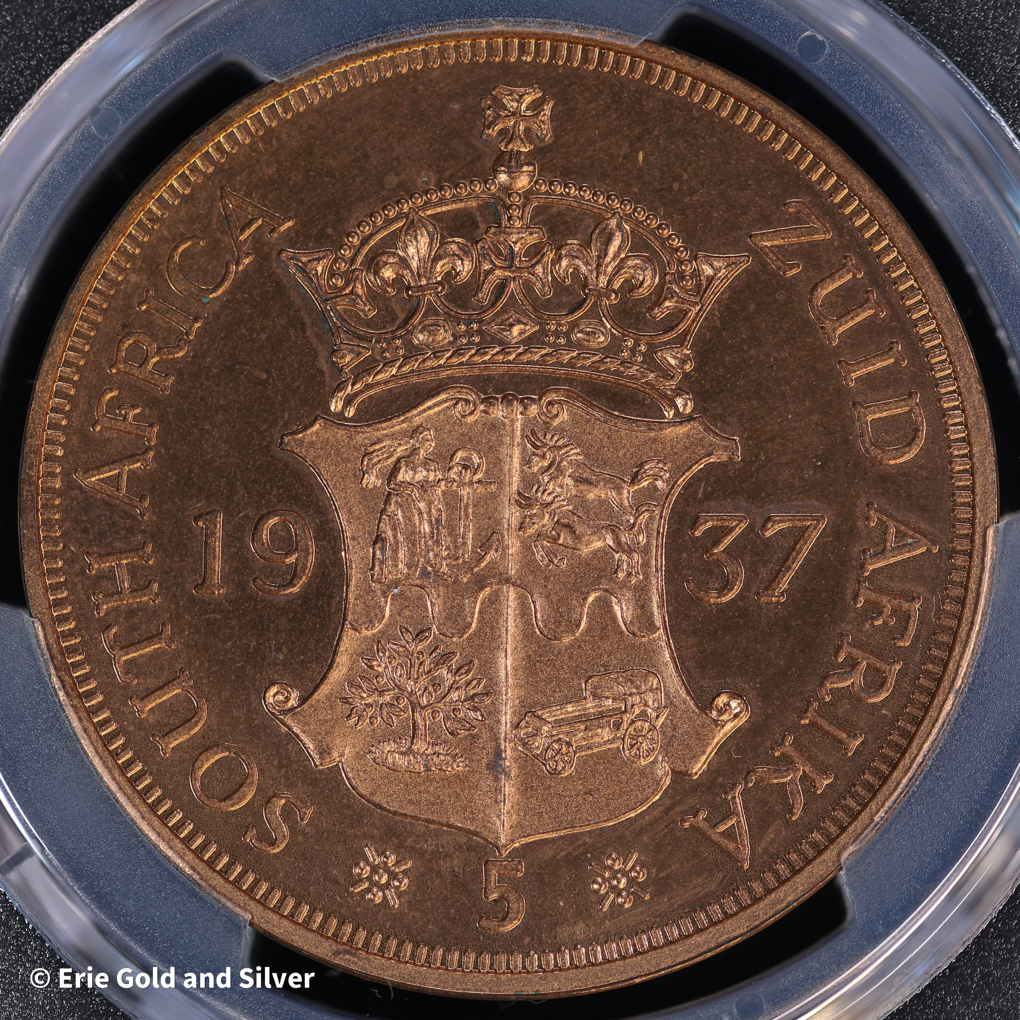 "1937"(2000) South Africa Proof Copper 5 Shilling PCGS PR 65 RD | FC26 Edward VIII PE
