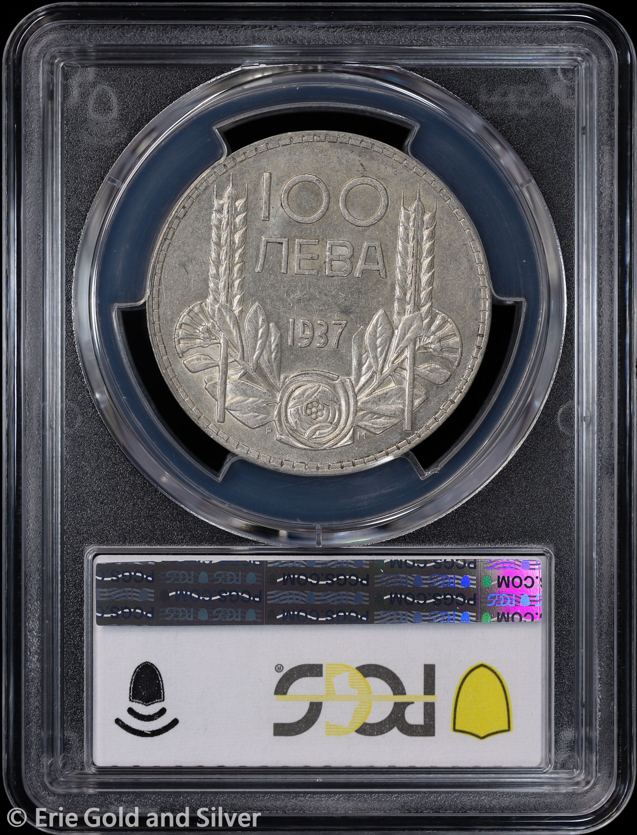 1937 Bulgaria Silver 100 Leva Coin PCGS AU 53
