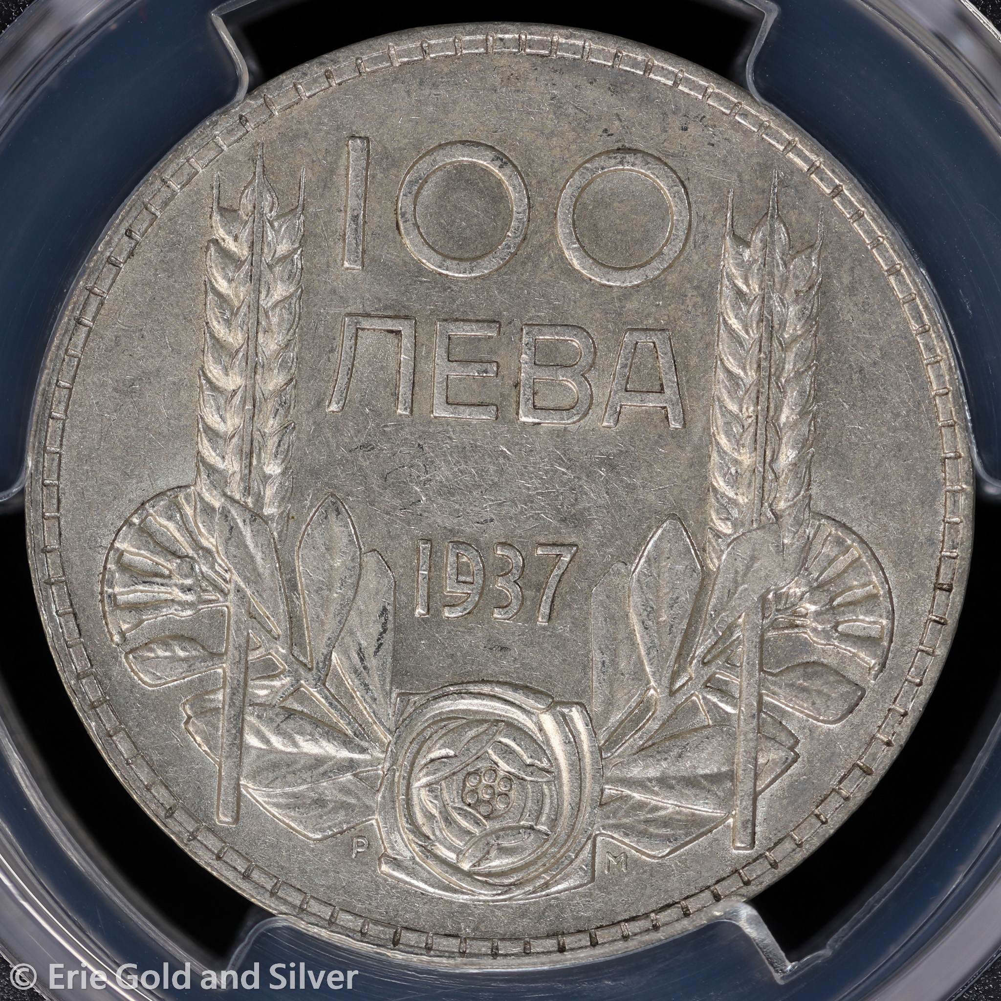 For sale is a 1937 Bulgaria Silver 100 Leva Coin. Certified / graded by PCGS at AU 53.