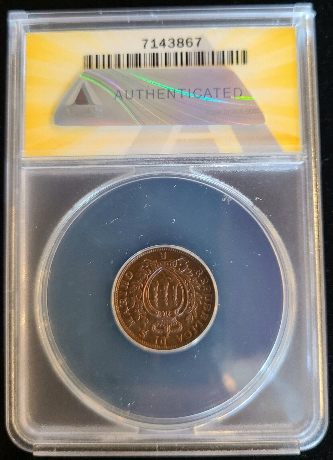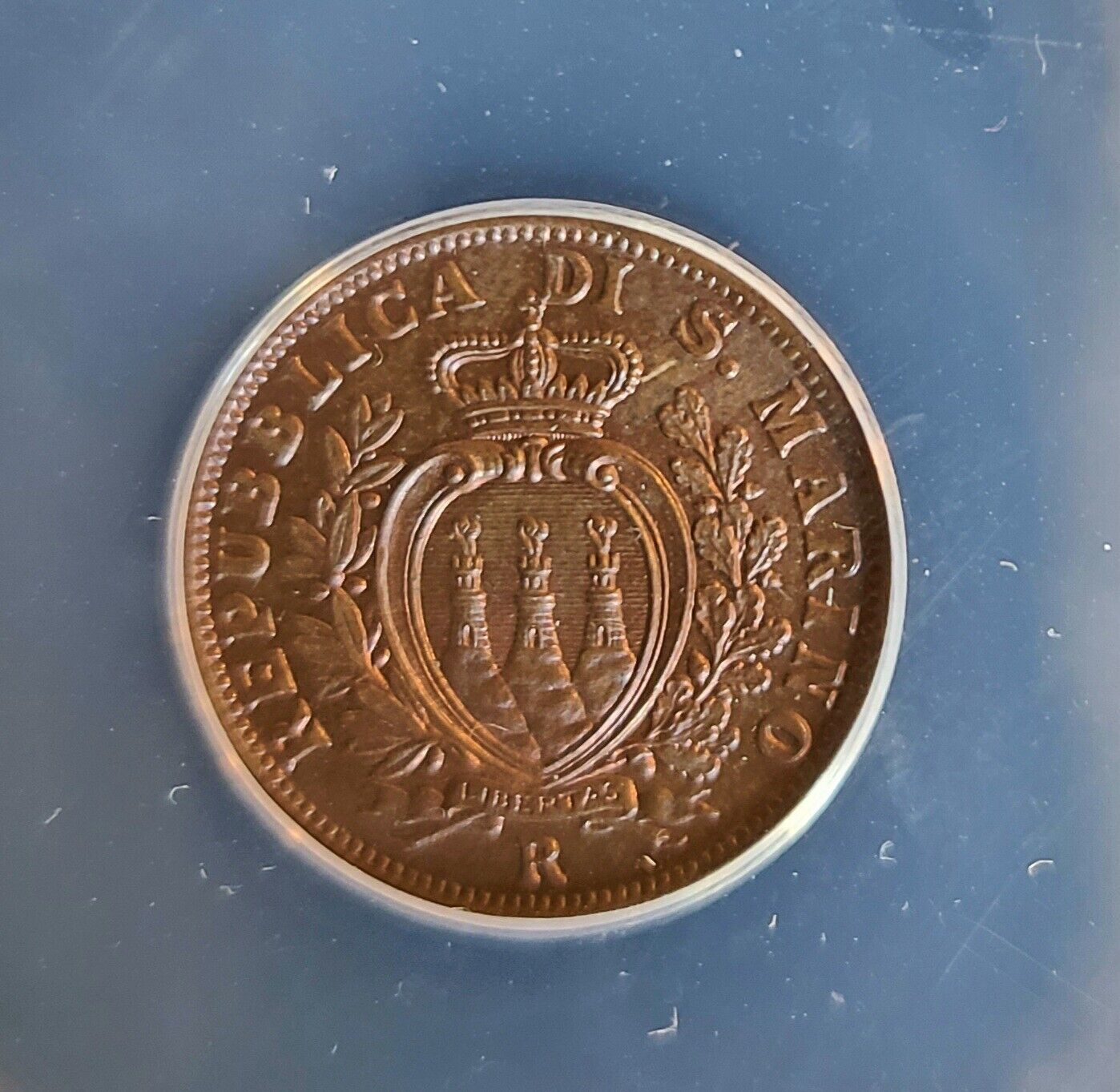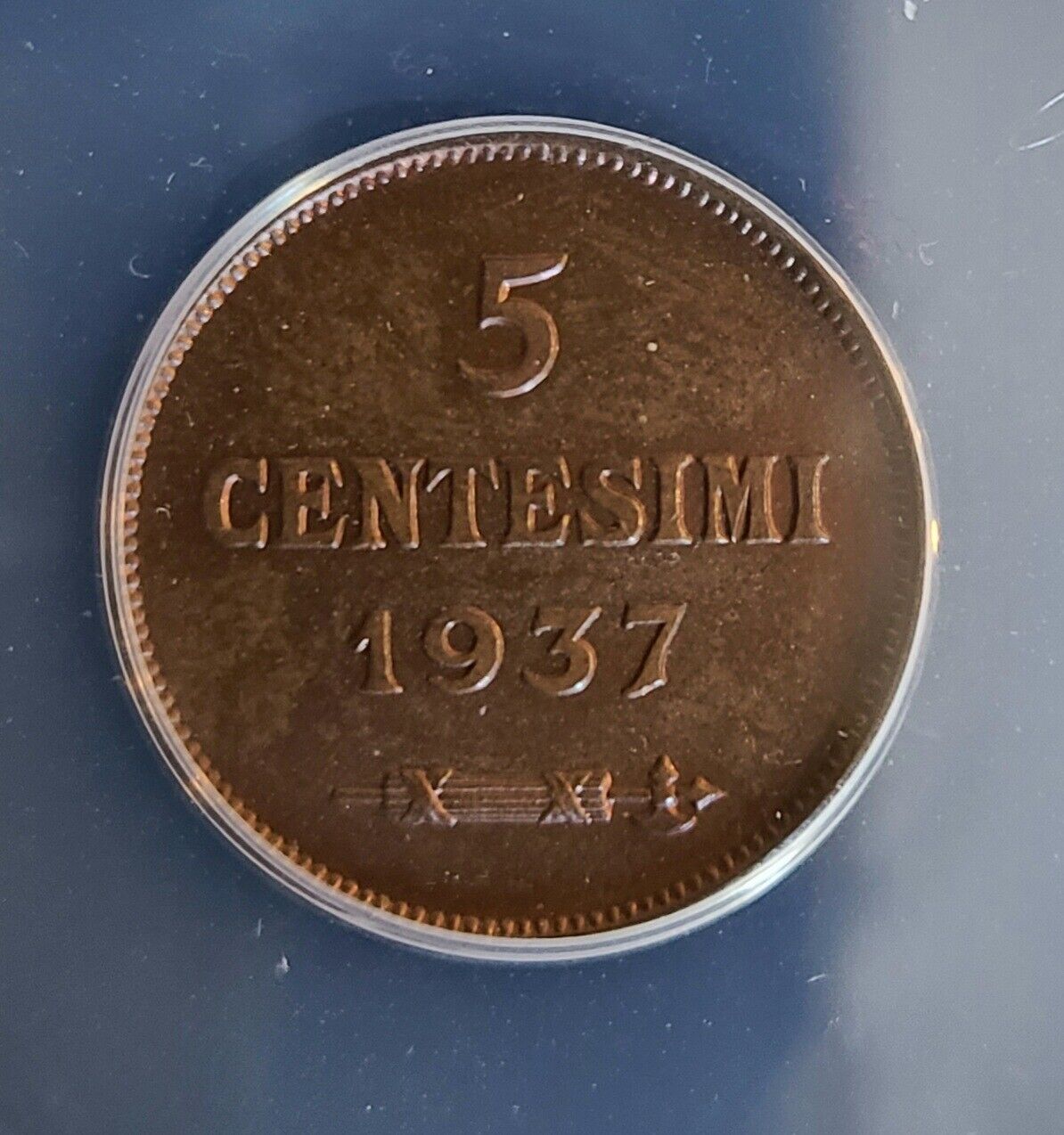 1937-R San Marino 5 Centesimi ANACS MS 64 BRN | KM#12