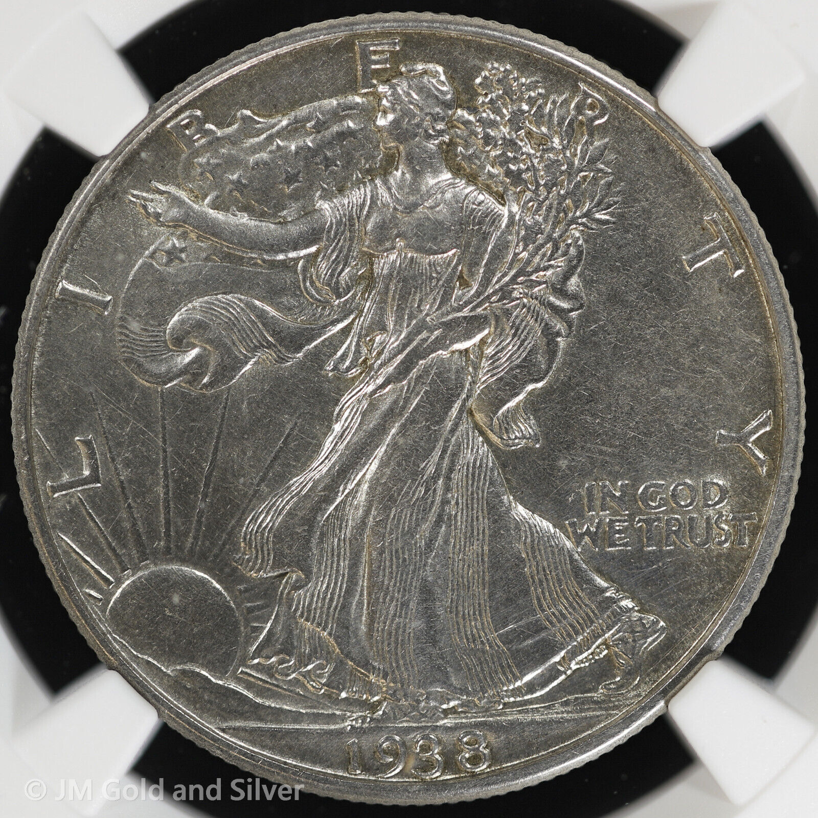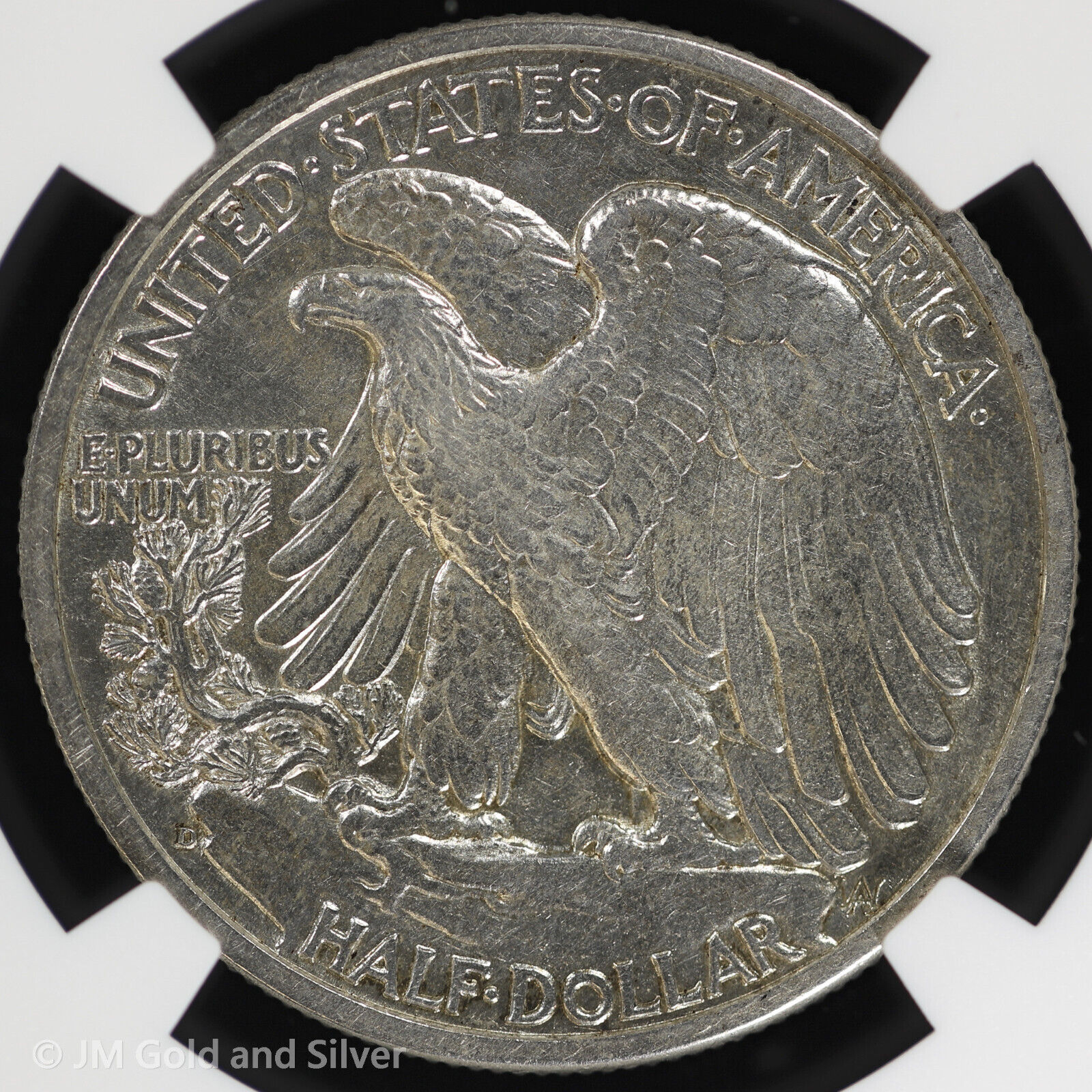 1938-D 50C Walking Liberty Silver Half Dollar NGC AU Details