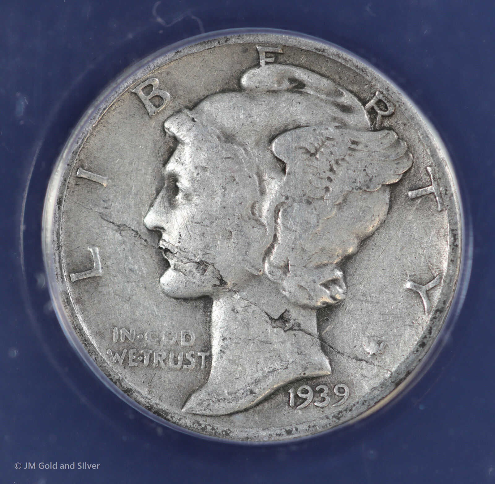 1939 10c Silver Mercury Dime ANACS F 12 | Major Obverse Lamination Error Coin