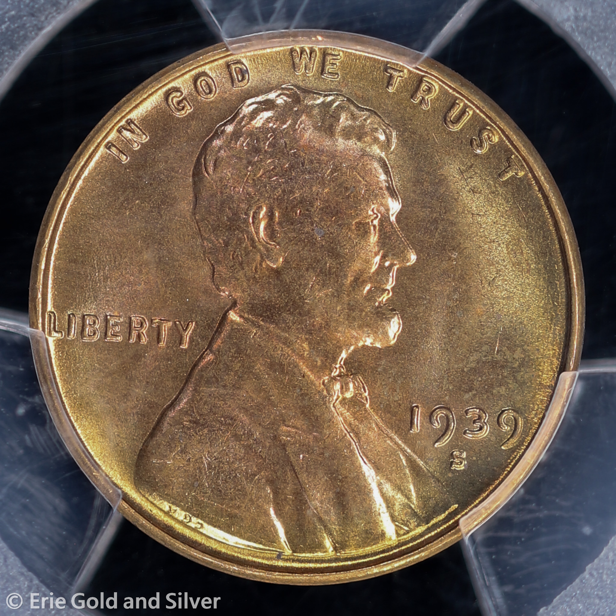 For sale is a 1939-S Lincoln Wheat Cent. Certified / graded by PCGS at MS 65 RD.