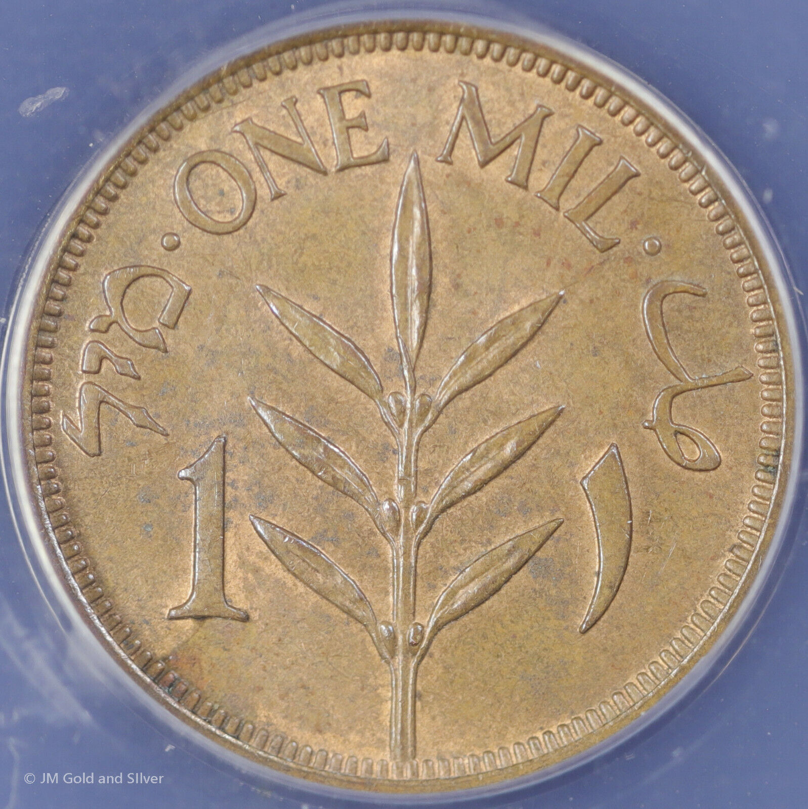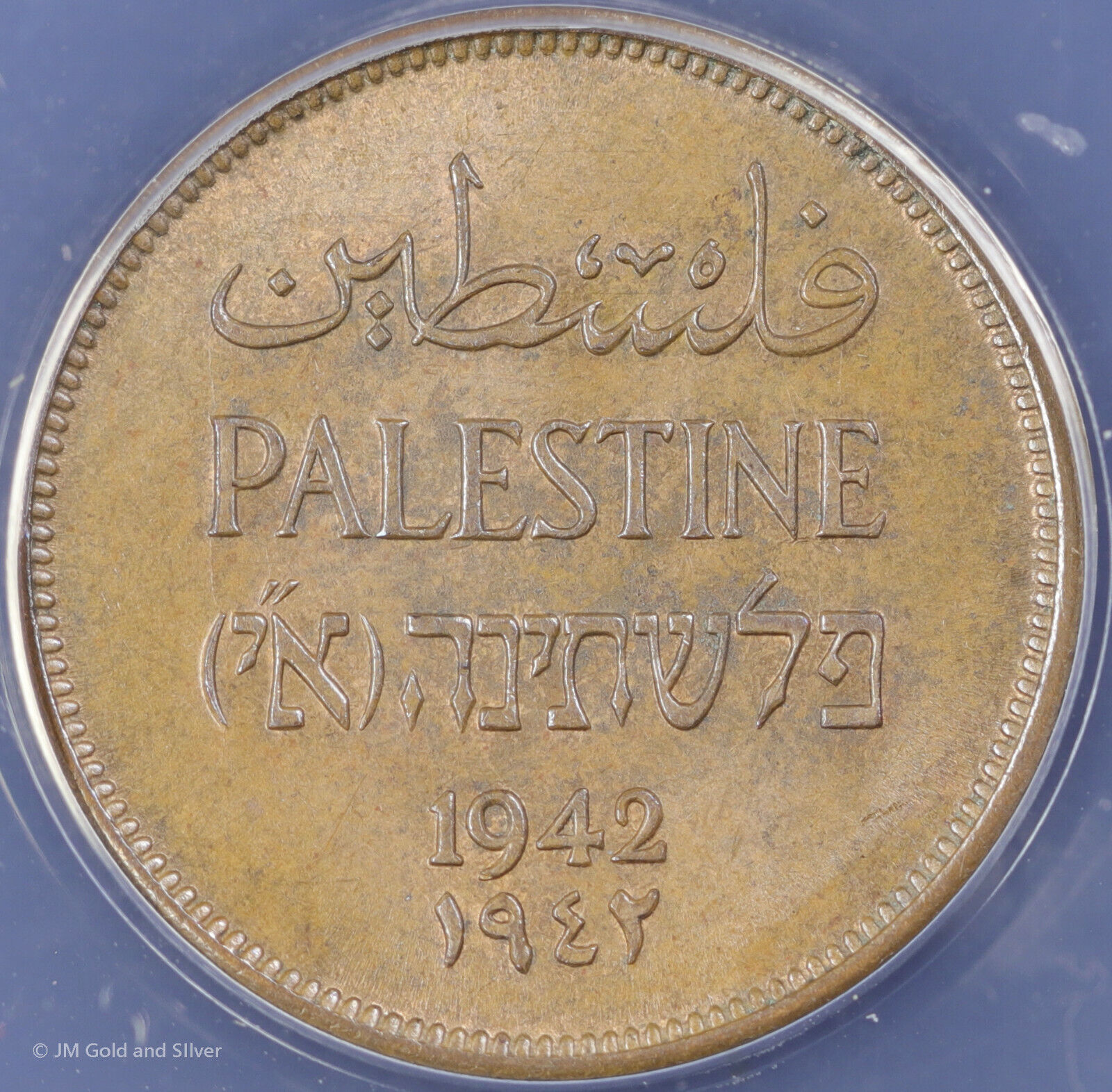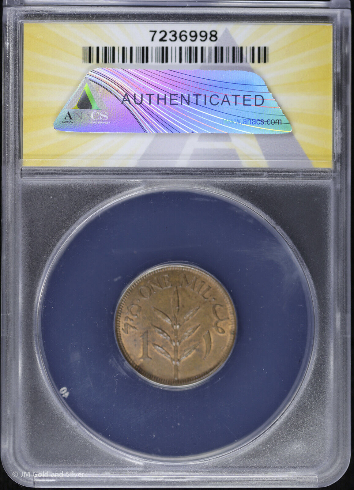 1942 1M Palestine 1 Mil ANACS MS 60 Details KM#1 (BU Uncirculated) copper Cu
