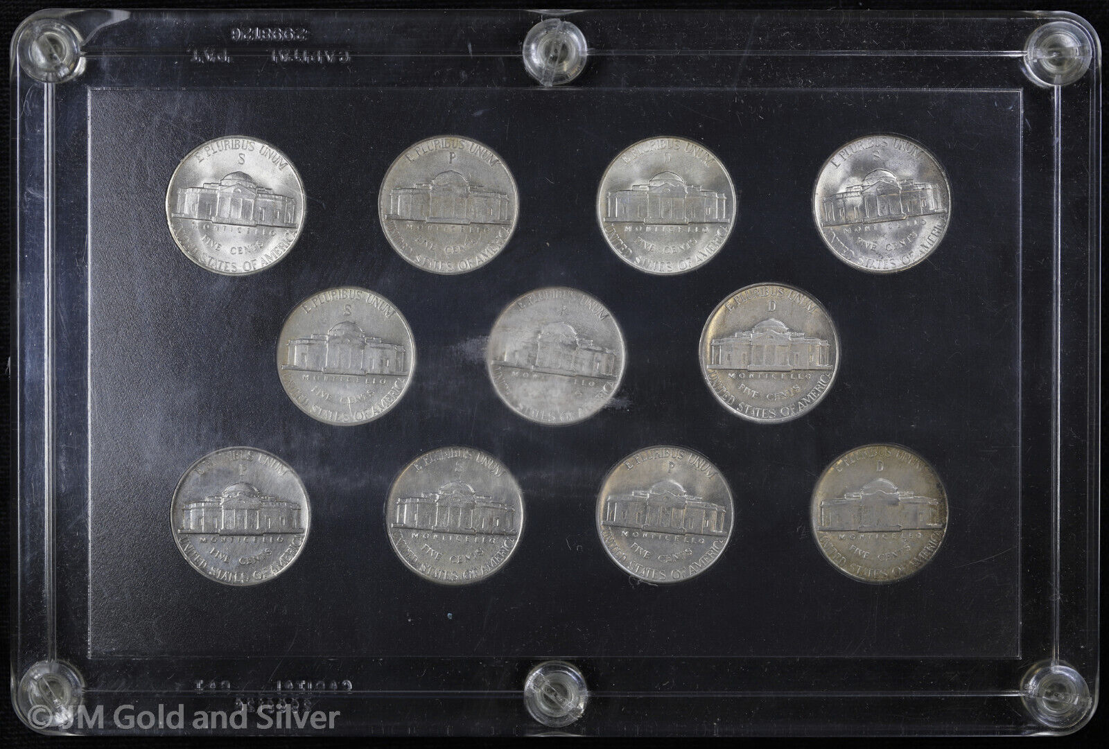1942-45 P D & S Jefferson Silver War Nickel 11pc Set
