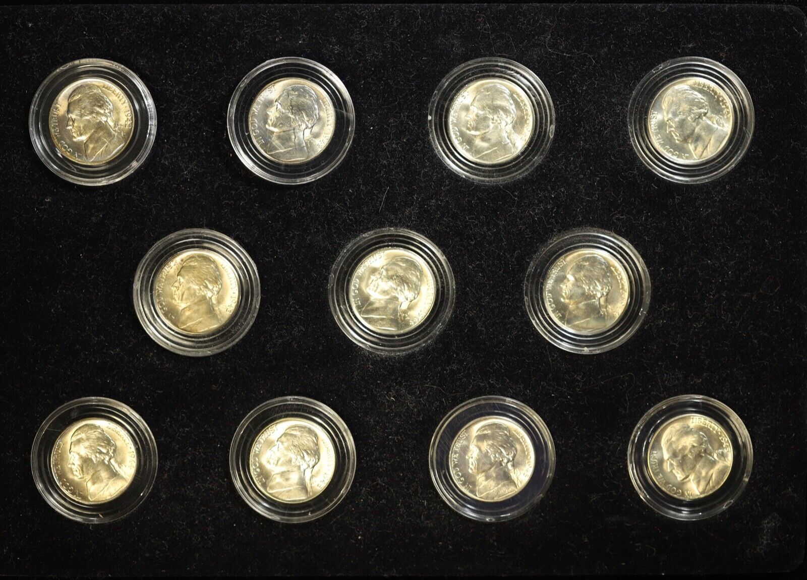 1942-45 P D & S Jefferson Silver War Nickel 11pc Set in a Box