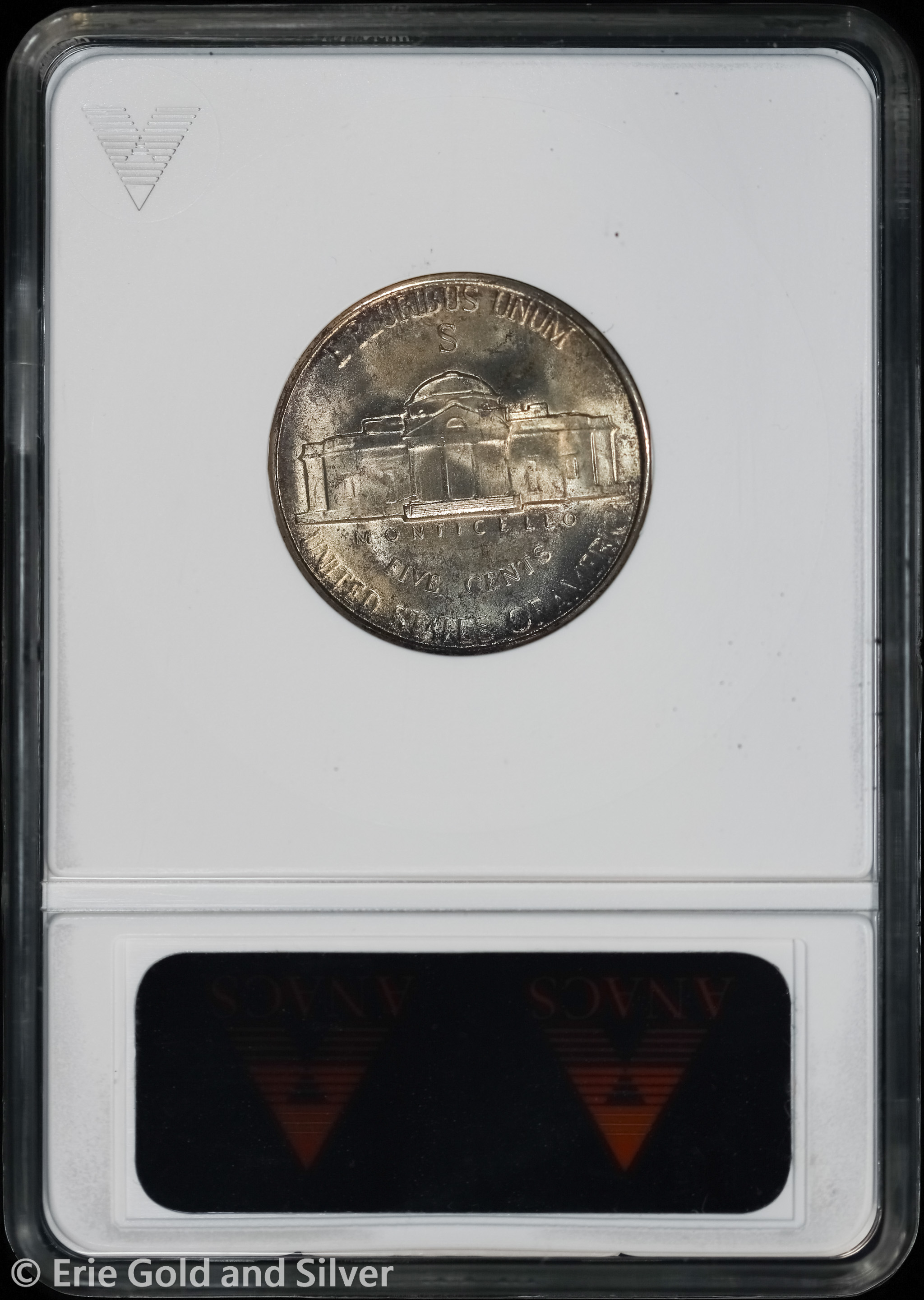 For sale is a 1944-S Jefferson Silver War Nickel. Certified / graded by ANACS at MS 66. View pictures for details and condition. The item pictured is the exact item you will receive. Feel free to contact us with any questions.
