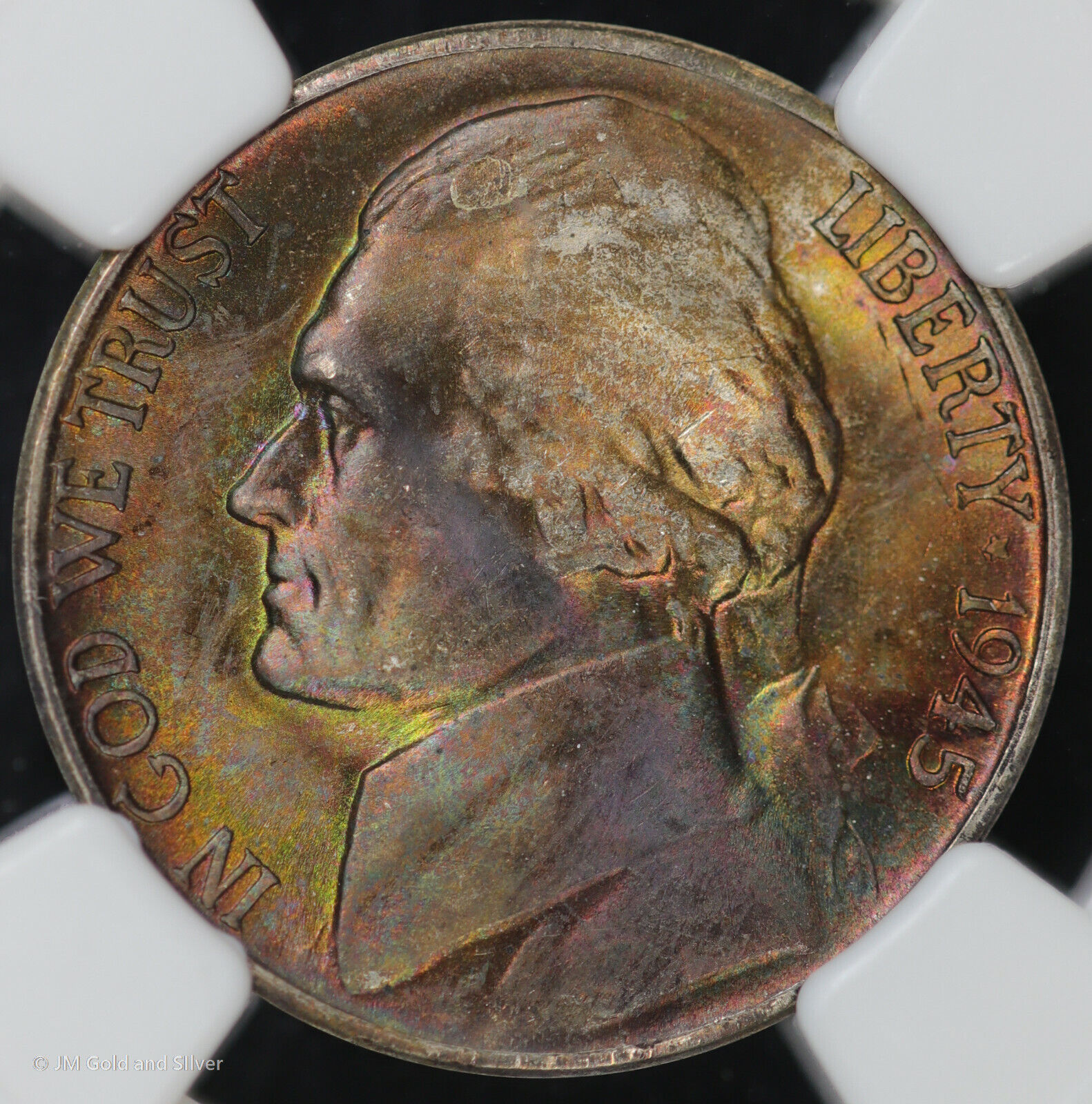 1945 S 5C Jefferson War Nickel 35% Silver NGC MS 65 | Uncirculated Toning!