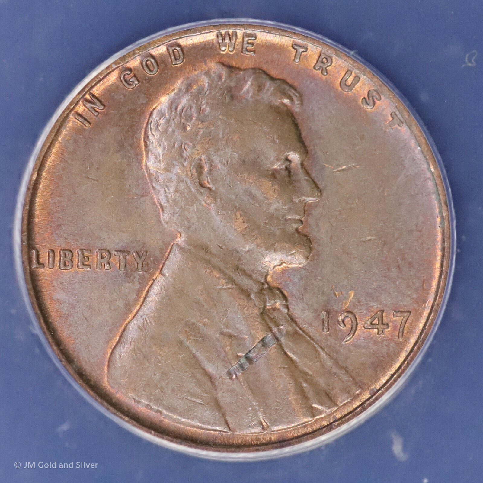 1947 Lincoln Wheat Cent ANACS AU 55 | Mint Error: Obverse Lamination