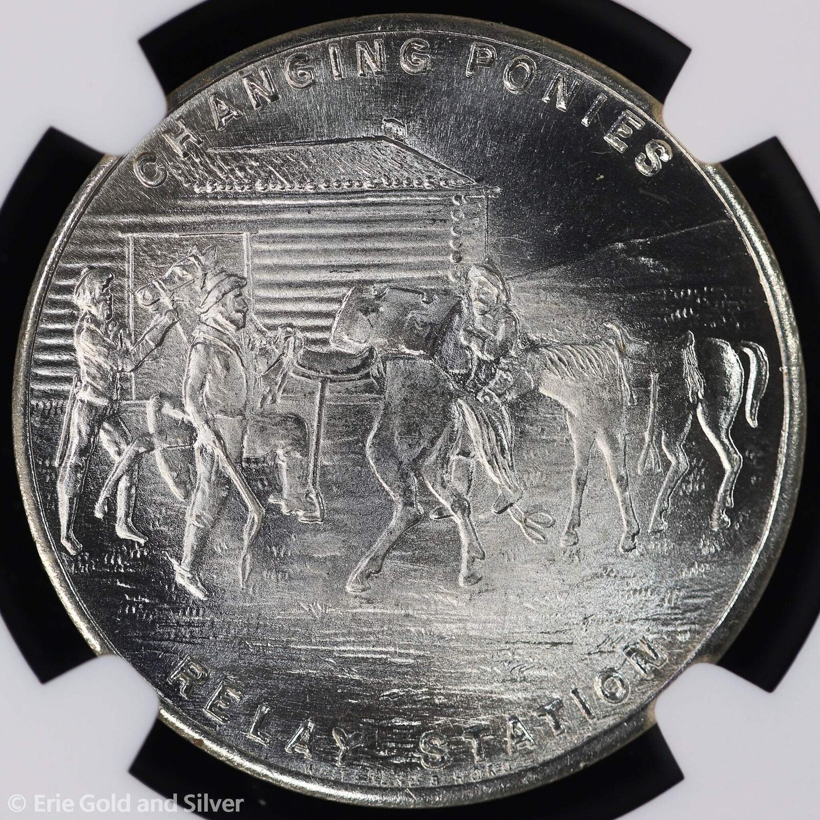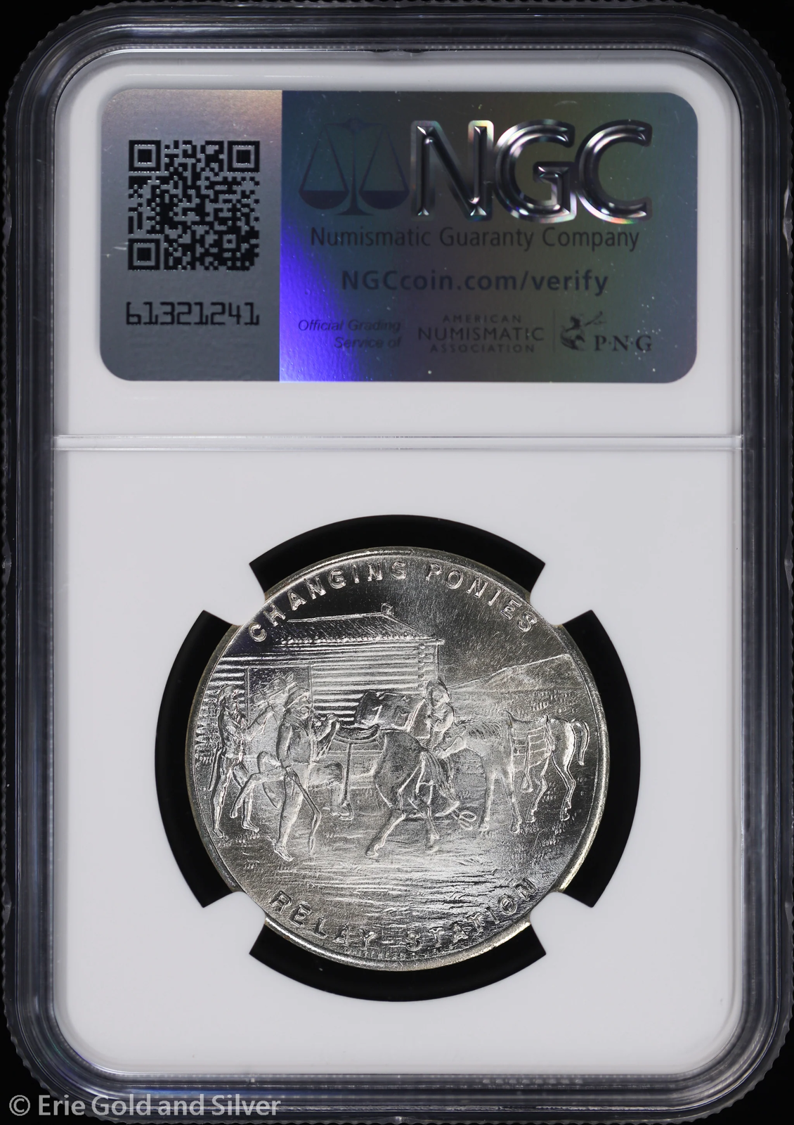 1947 SC50c C. Smith Pony Express Diamond Jub Changing Ponies Medal NGC MS 68