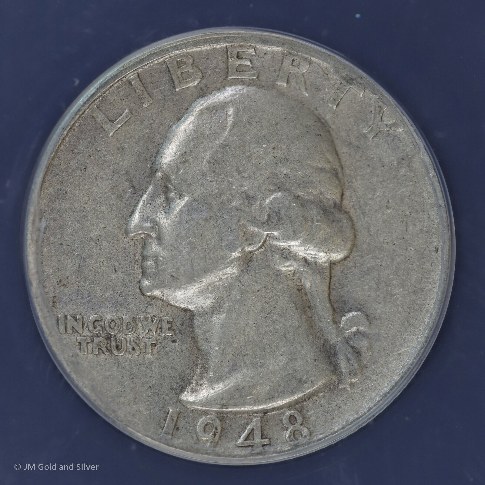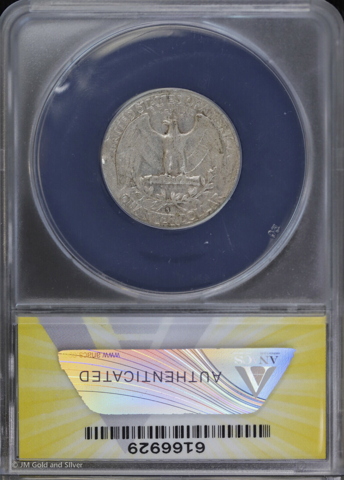 1948 S 25c Washington Quarter ANACS EF 45 | Rim Clip XF
