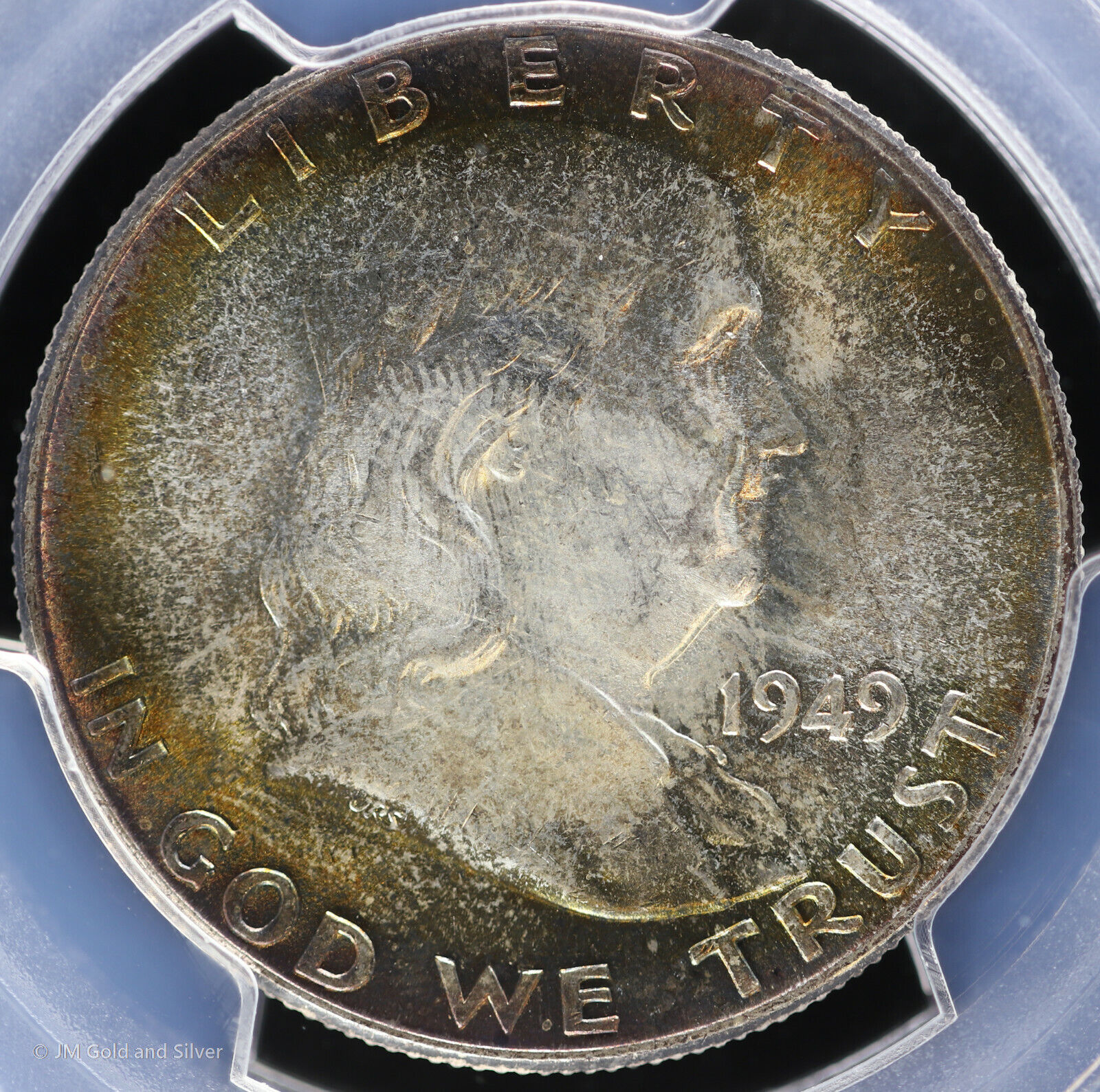 1949 50c Silver Franklin Half Dollar PCGS MS 65 FBL | Full Bell Lines Color