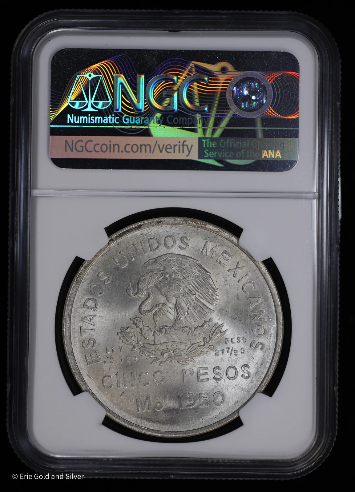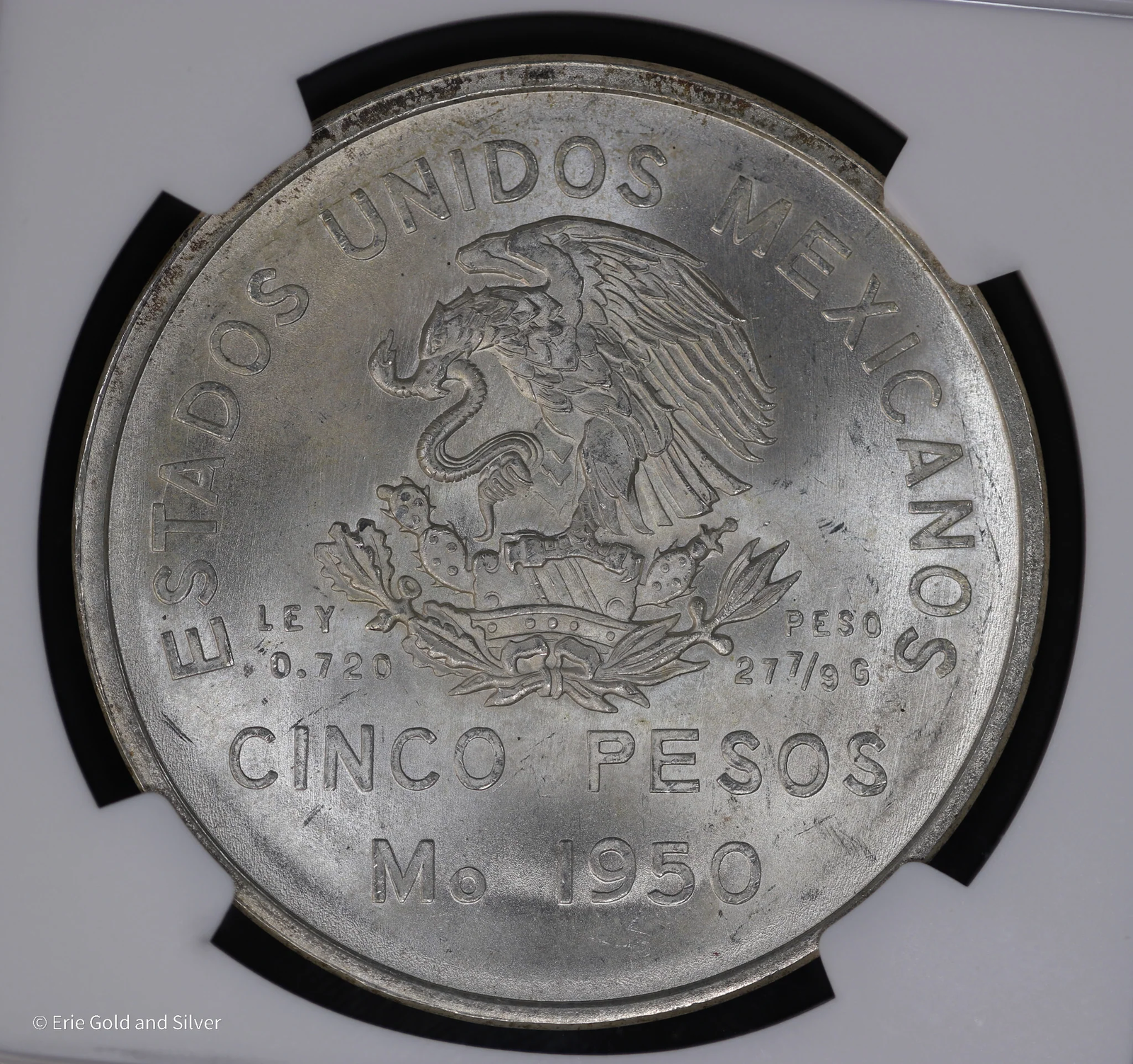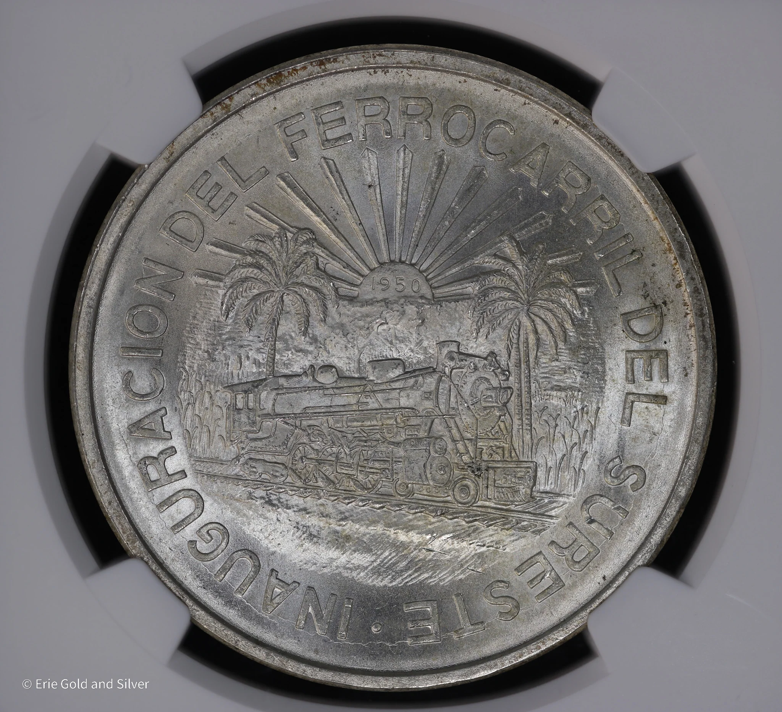 1950 5P Mexico Silver 5 Peso NGC MS 65 | Southeastern Railroad | Ferrocarril