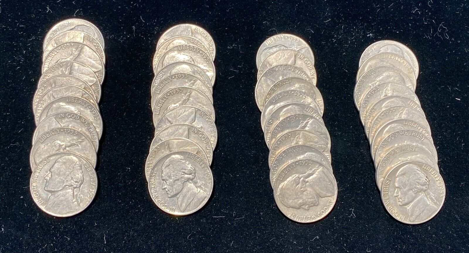 1953-S Jefferson Nickel 5c Roll (40 Coins) Circulated - From Hoard Unsearched