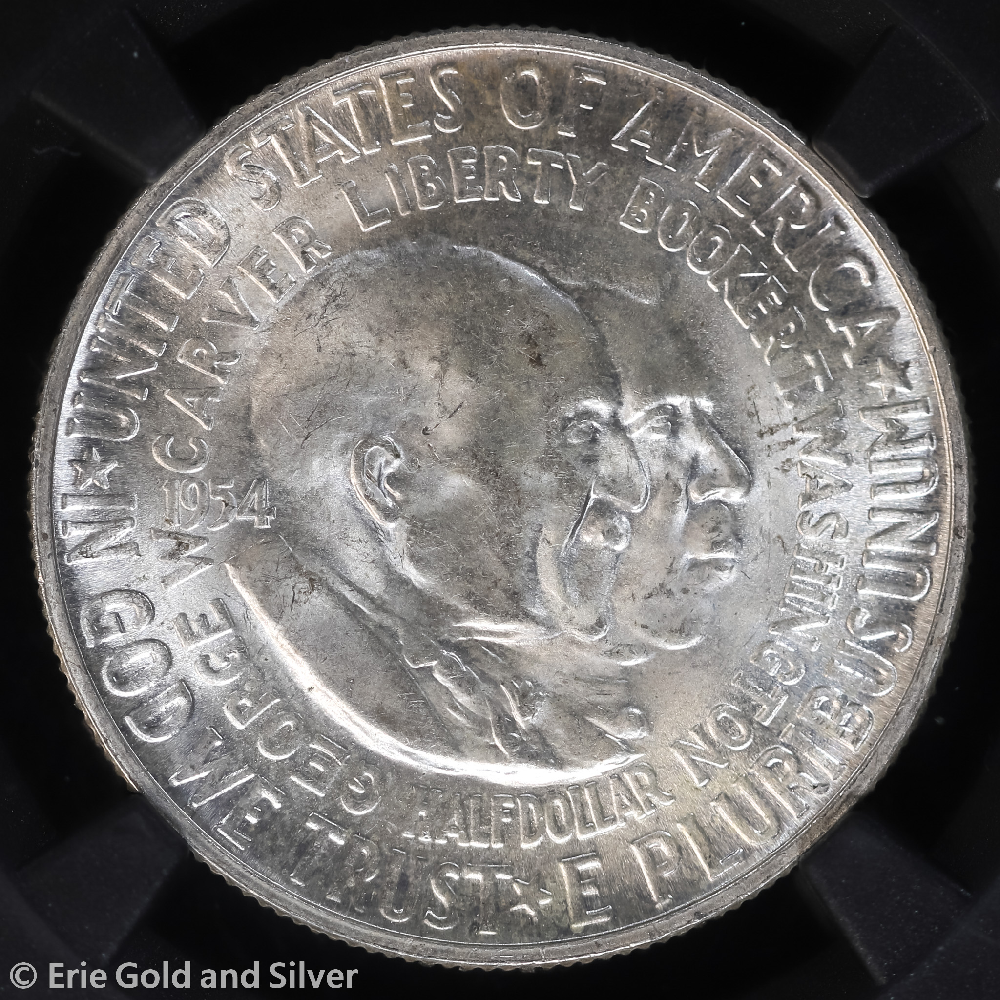For sale is a 1954 Washington Carver Commemorative Half Dollar. Certified / graded by NGC at MS 65.