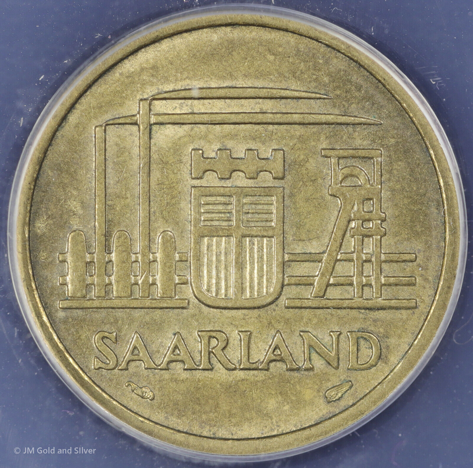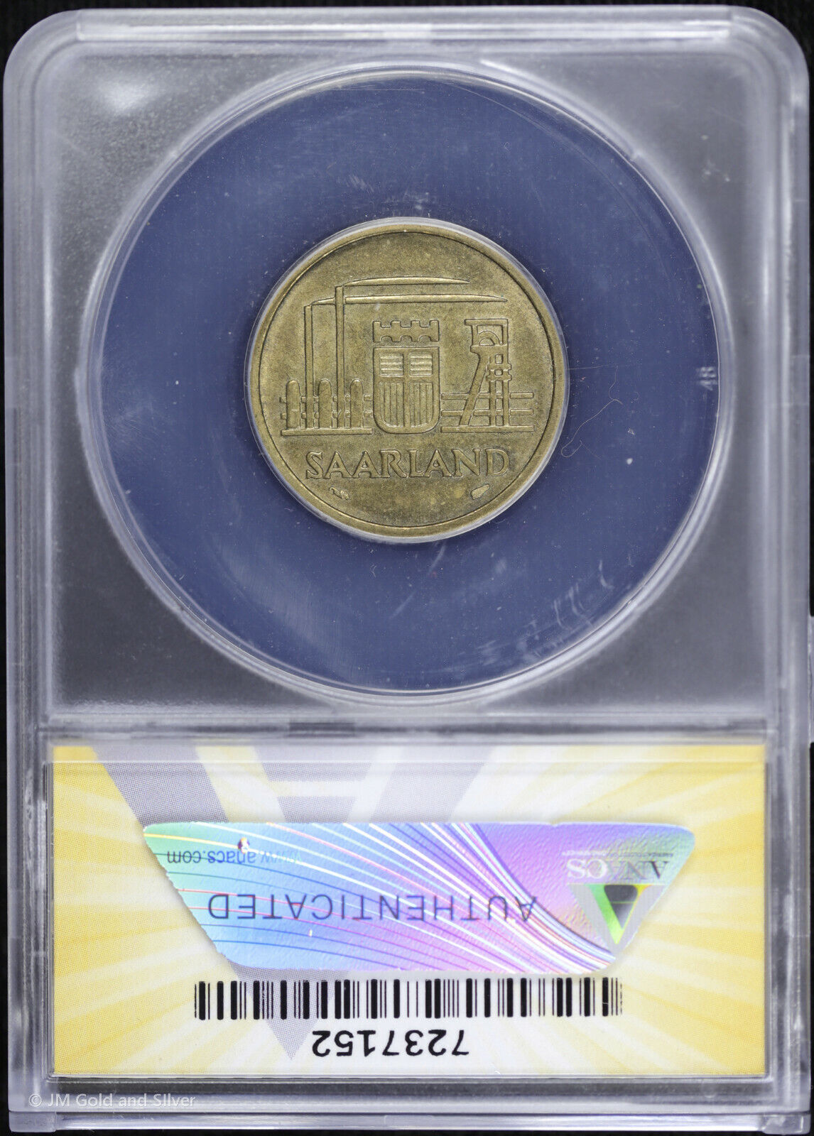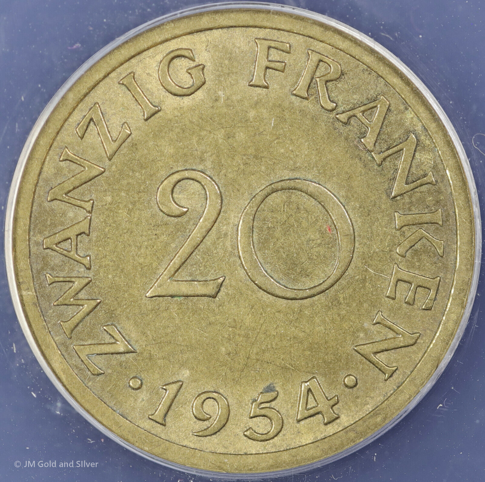 1954 Saarland 20F 20 Franken / Francs ANACS AU 55 | About (Almost) Uncirculated