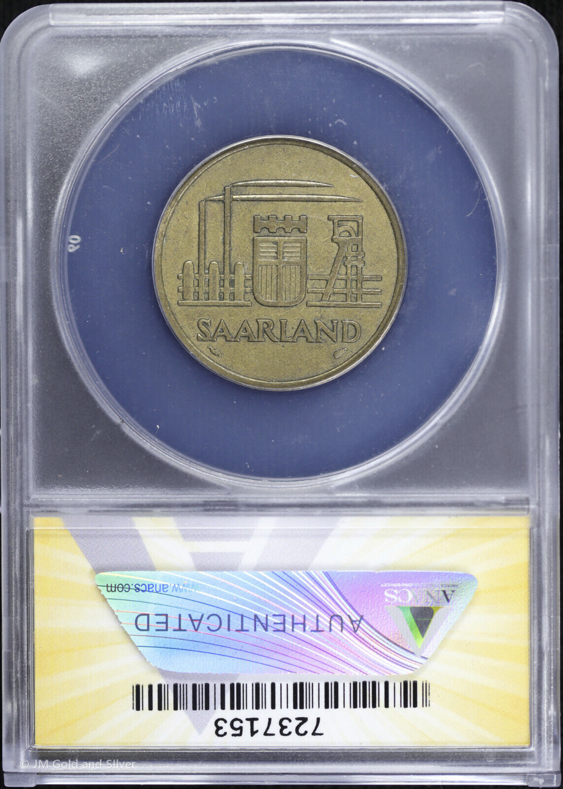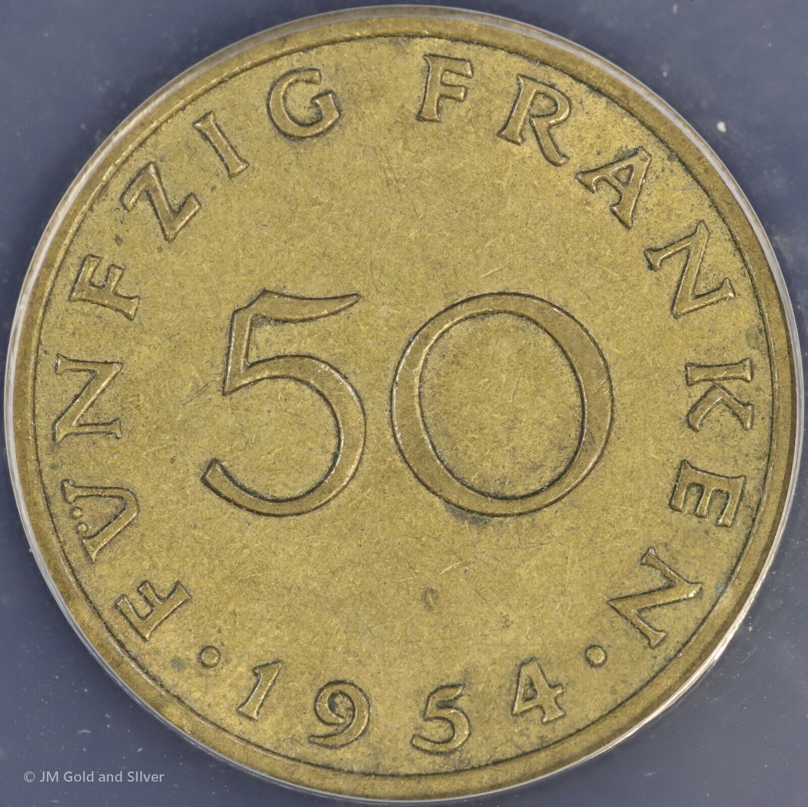 1954 Saarland 50F 50 Franken / Francs ANACS AU 50 | About (Almost) Uncirculated