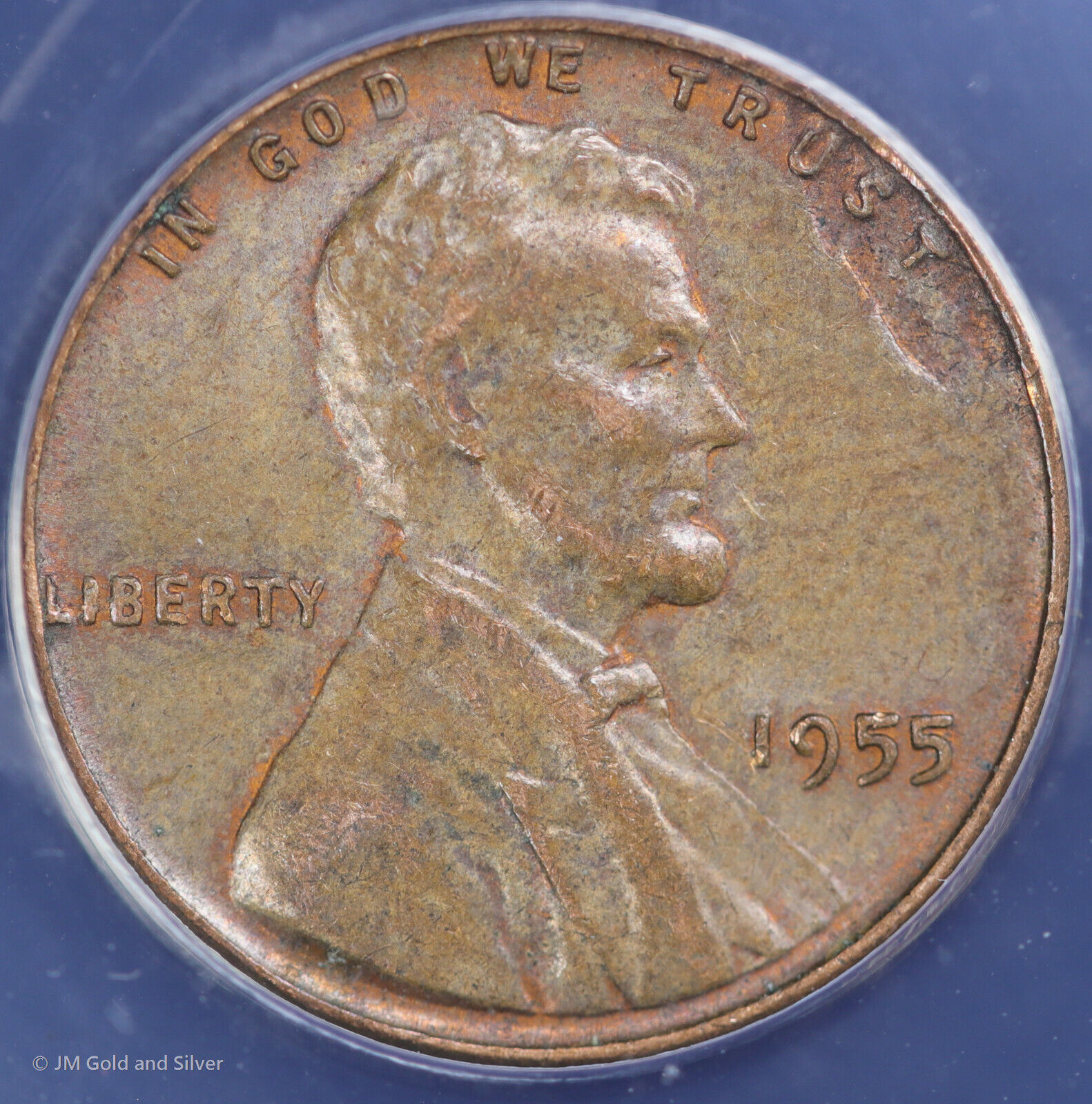 1955 1C Lincoln Wheat Cent ANACS AU 50 | Obverse Lamination Error