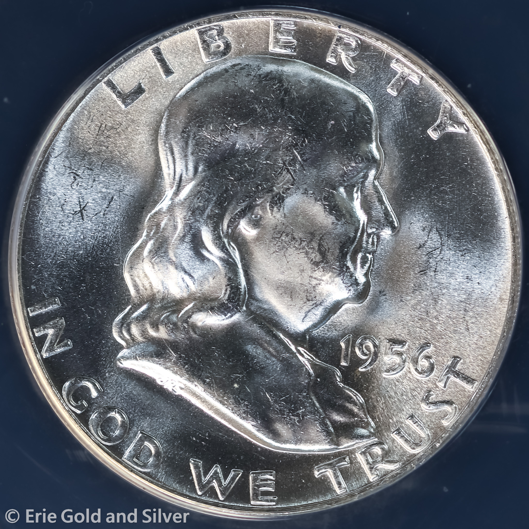 For sale is a 1956 Franklin Half Dollar. Certified / graded by ANACS at MS 63.
