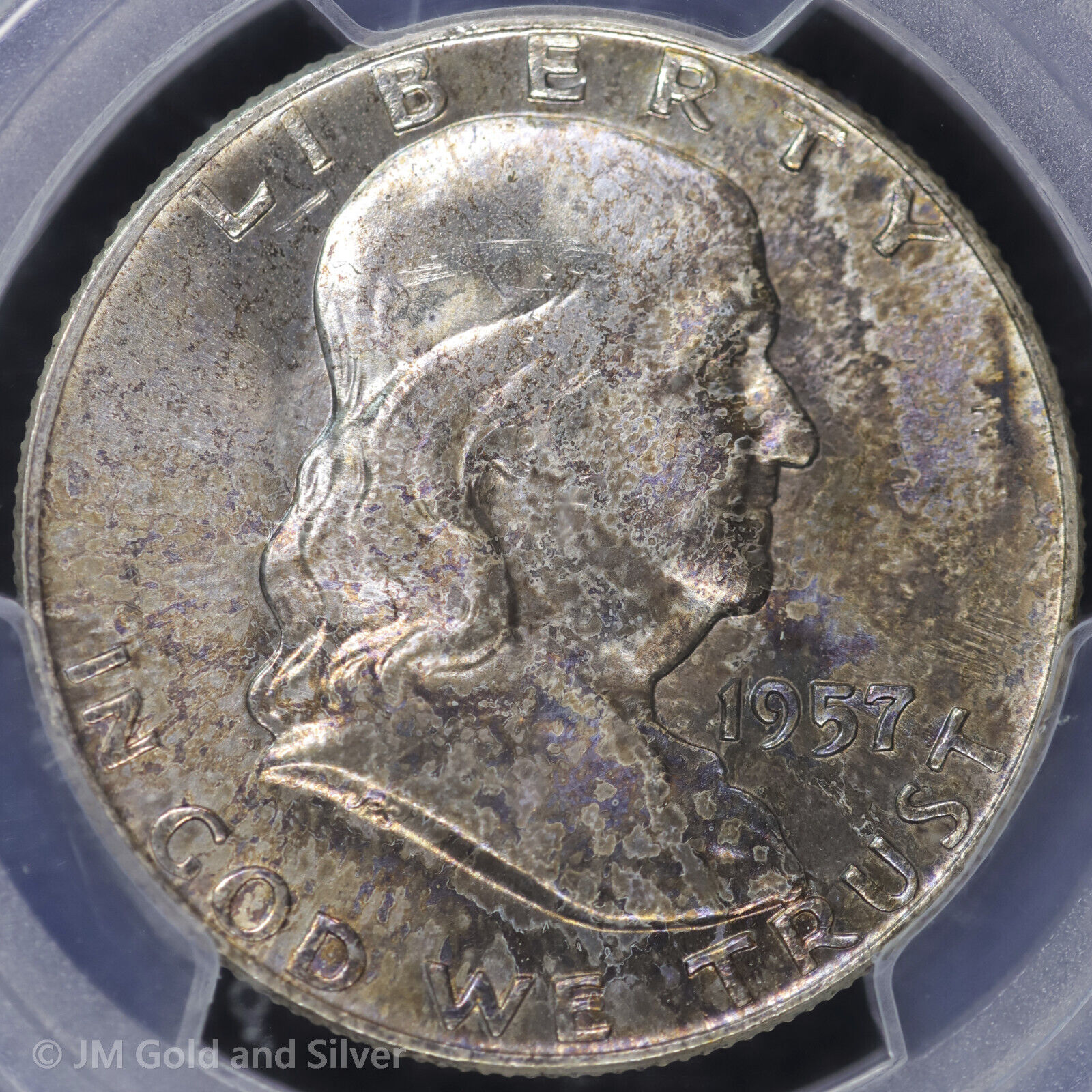 1957 D 50C Franklin Half Dollar PCGS MS 65 FBL Uncirculated UNC Full Bell Lines