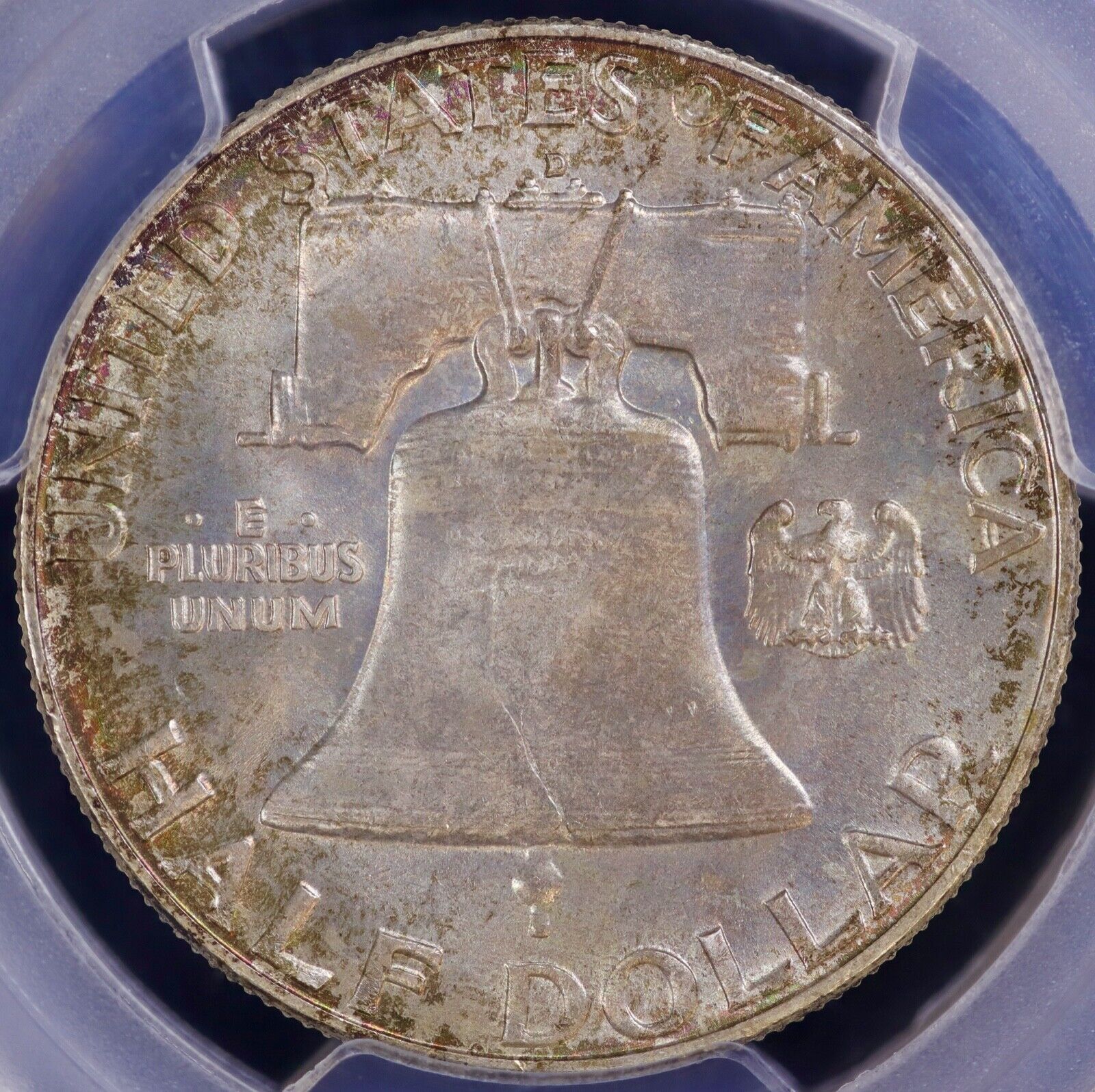 1957-D 50c Silver Franklin Half Dollar PCGS MS 66+ CAC (BU Unc) Toning Toned