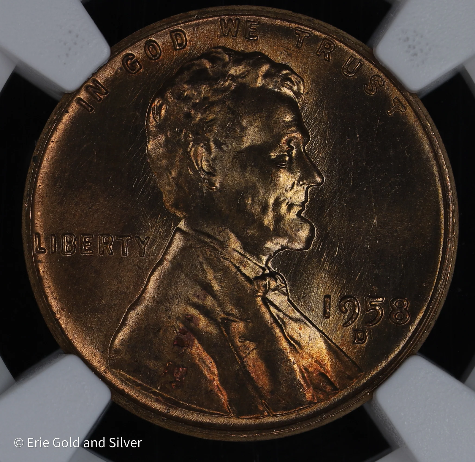 1958 D 1C Lincoln Wheat Cent NGC Mint Error MS 65 RB Lamination