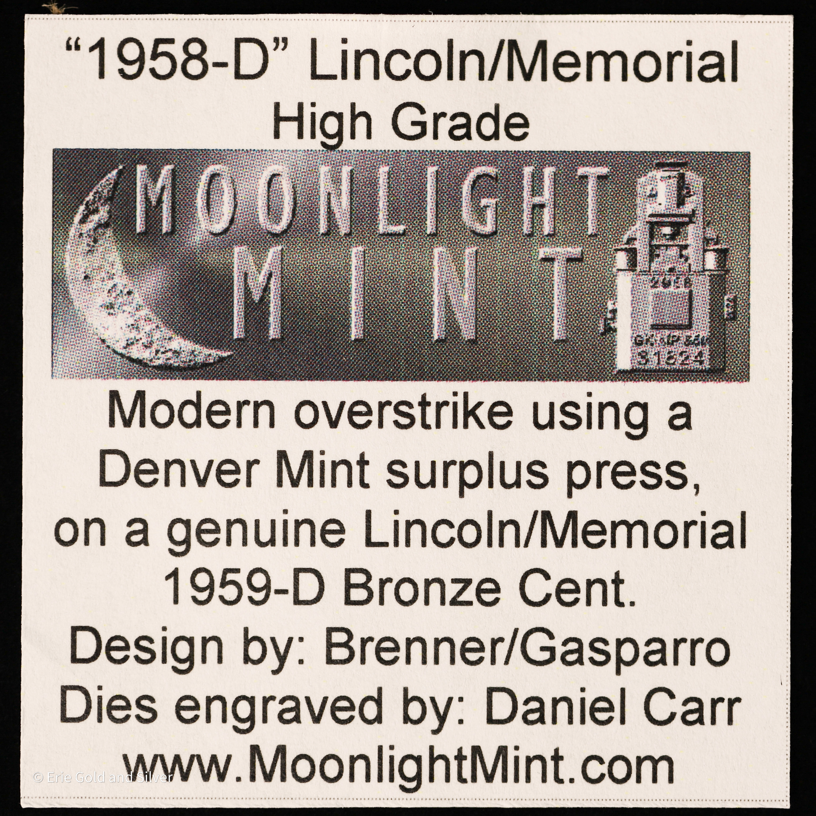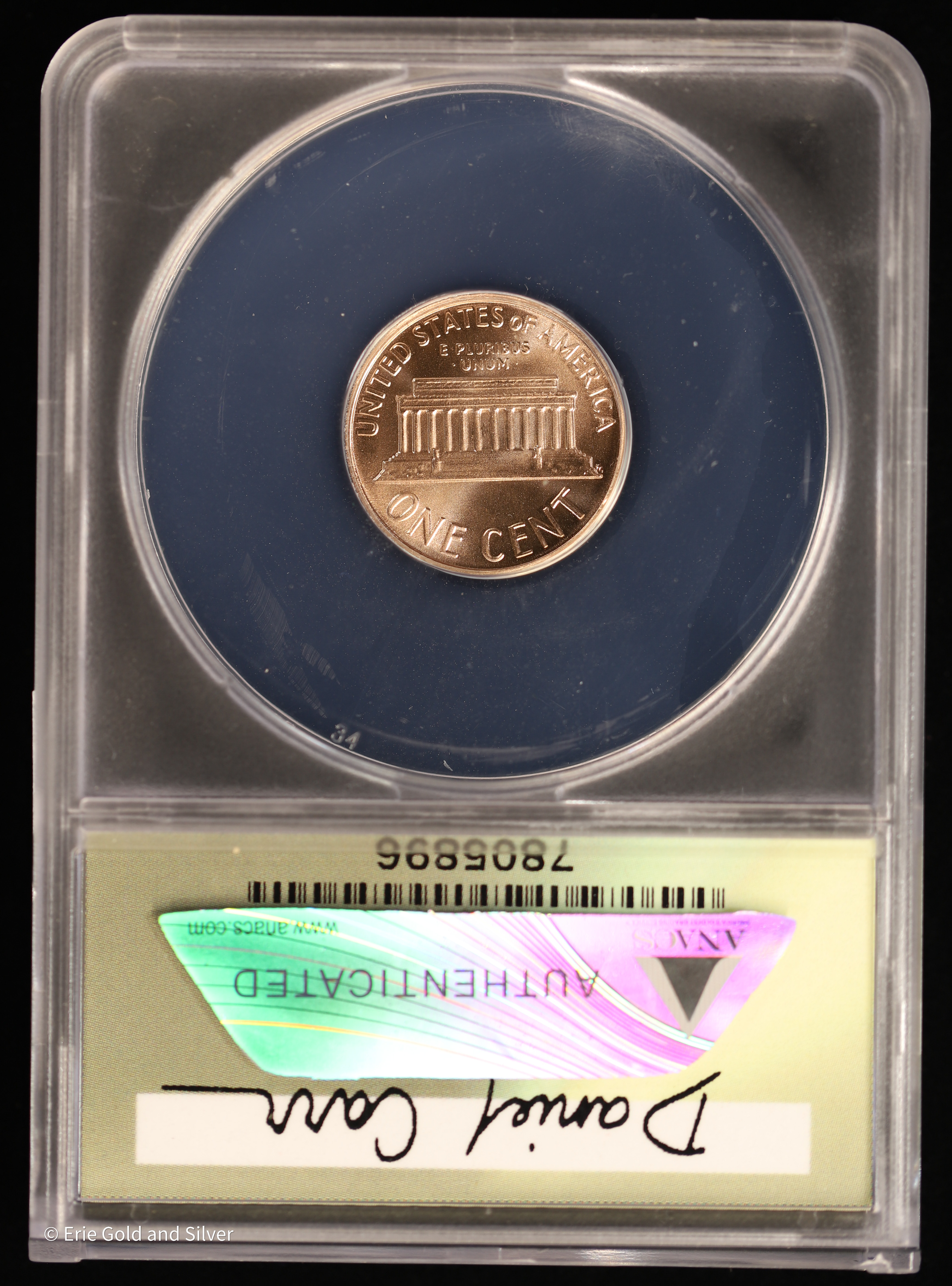 1958-D Dan Carr Lincoln 1C Memorial Rev O/S on USA 1959-D 1 Cent ANACS MS 70 Red