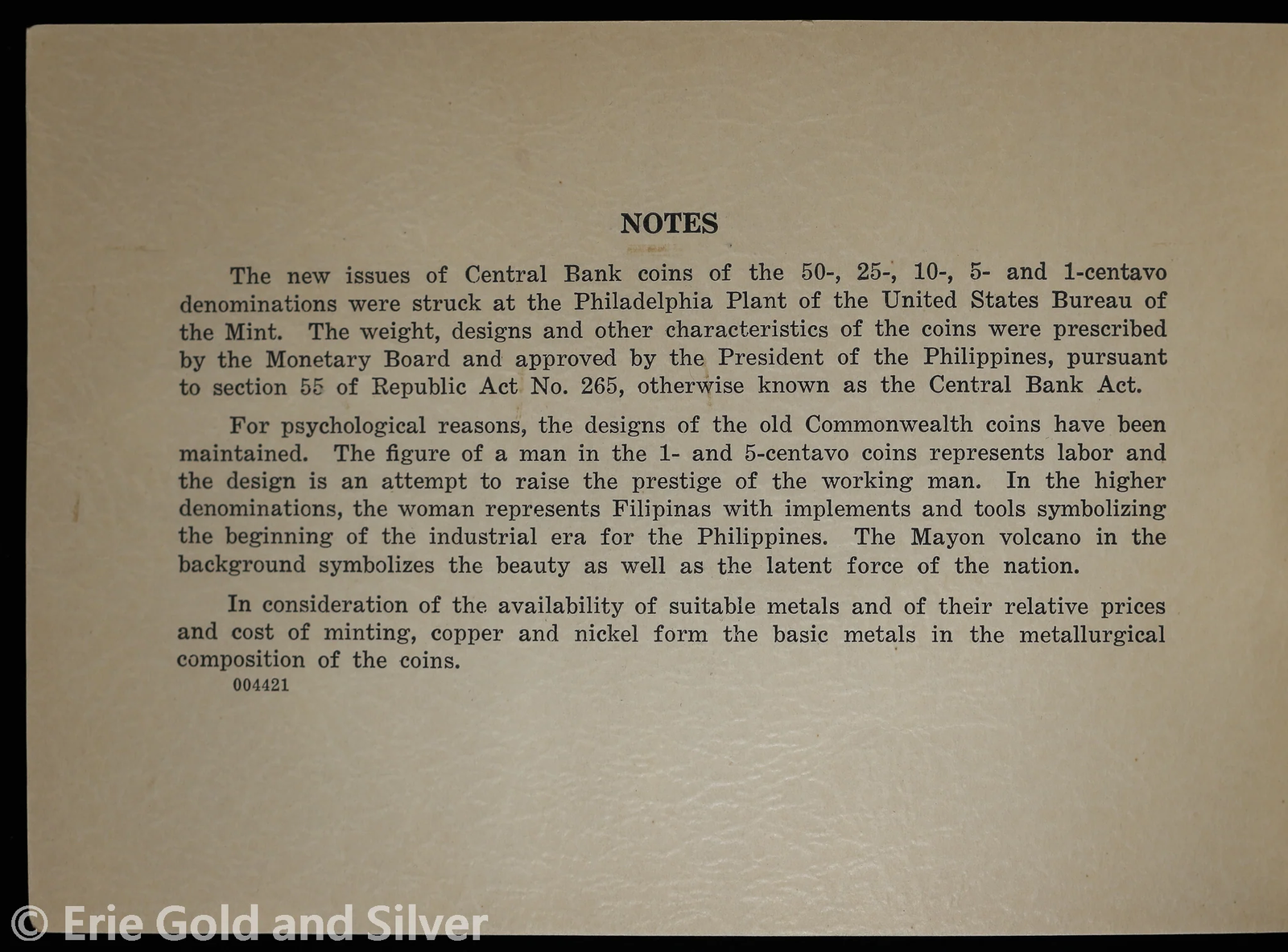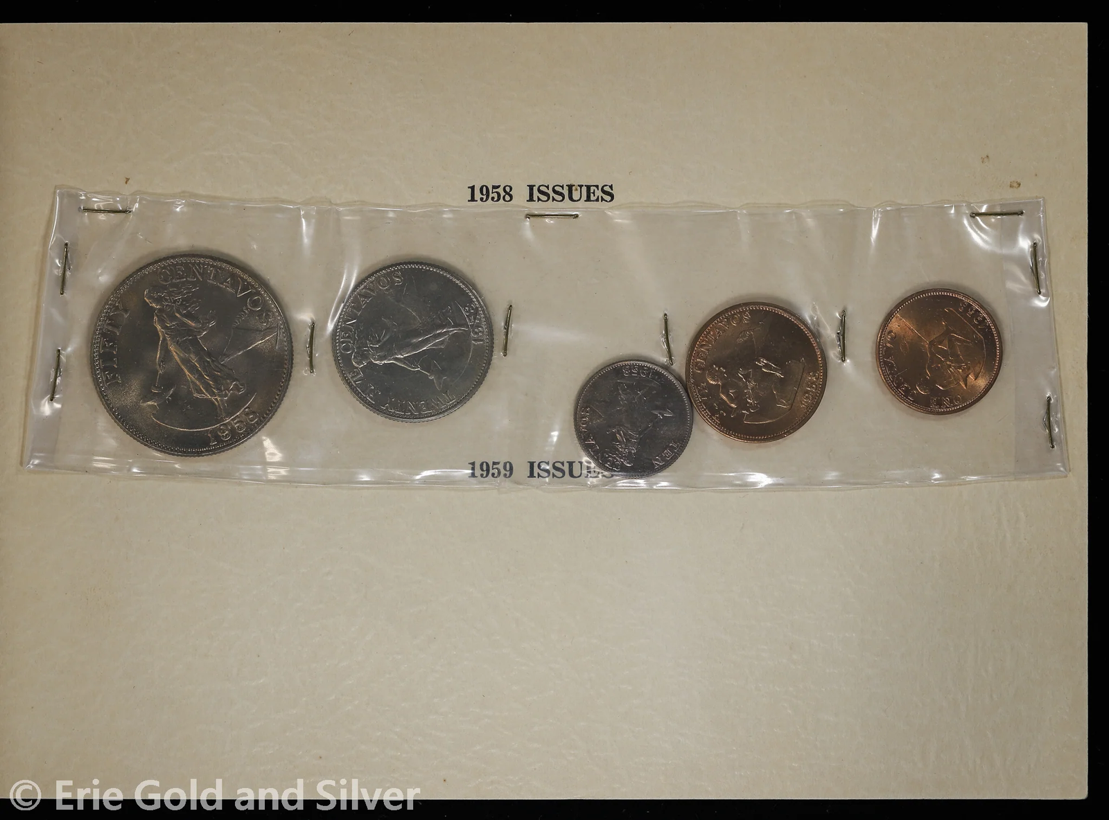 1958 Issue Central Bank of the Philippines Manila 5 Coin Set