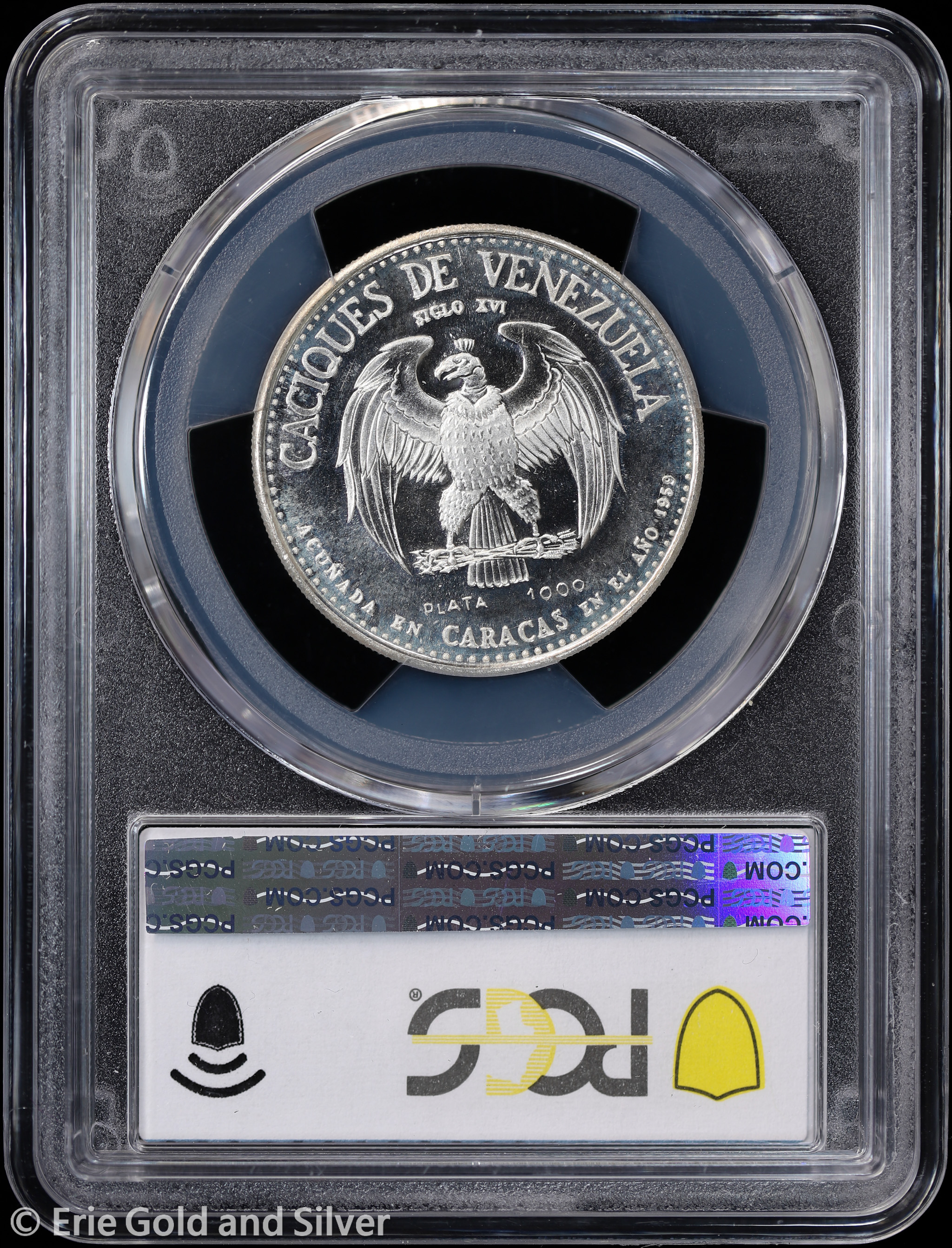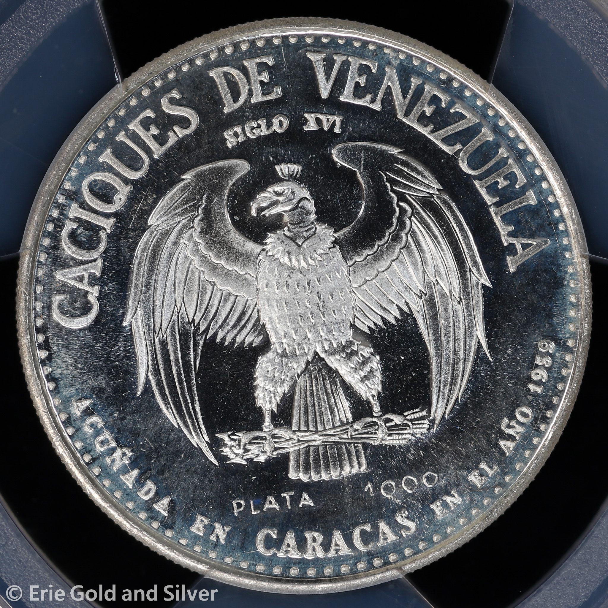For sale is a 1959 Venezuela Caciques Guaicaipuro Silver Medal. Certified / graded by PCGS at SP 66.