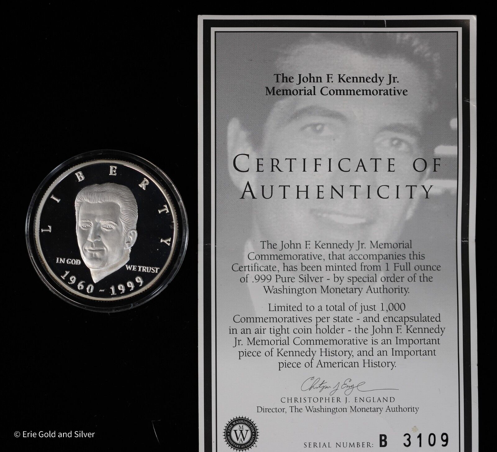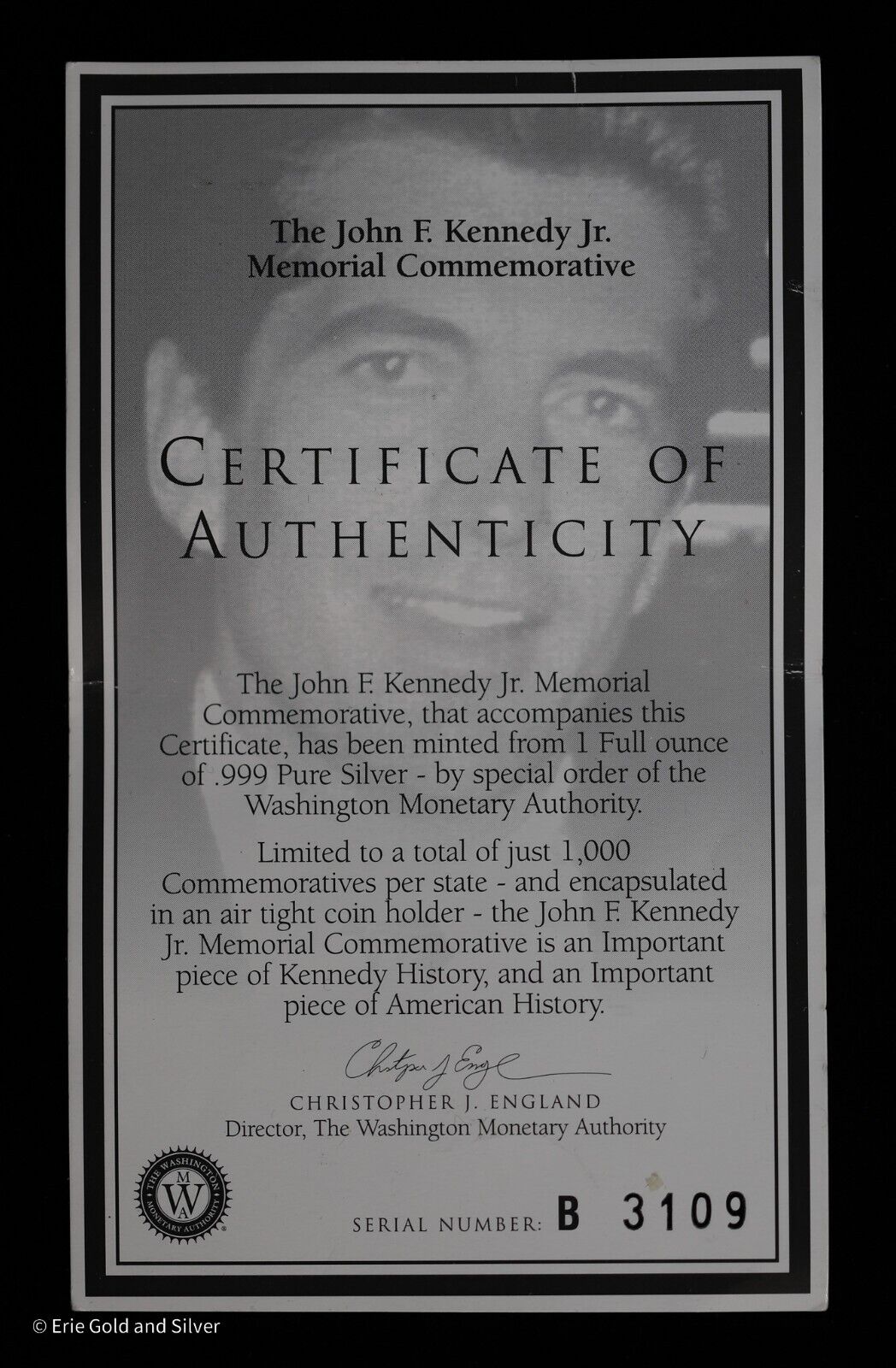1960-1999 John F. Kennedy Memorial Commemorative 1 oz Silver w/ COA