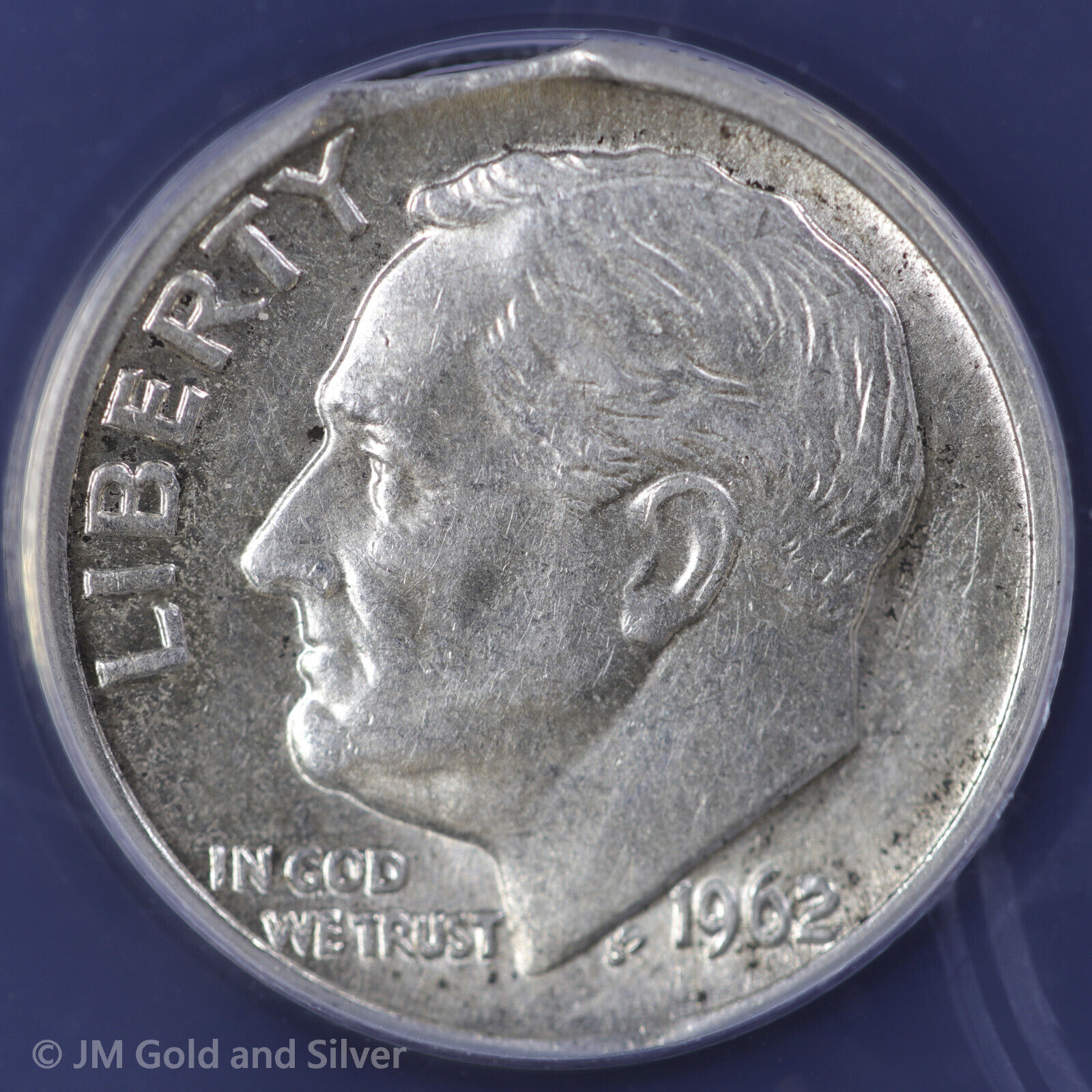 1962 D 10C Roosevelt Dime ANACS AU 55 | Error Curved Clip 2.46 grams Almost Unc.