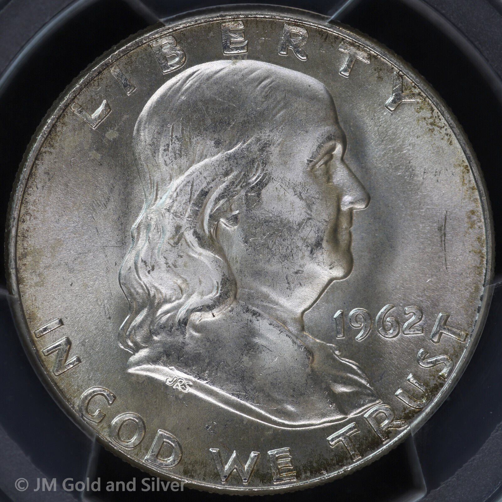 1962-D 50C Franklin Half Dollar PCGS MS 65 | End Roll Toning Uncirculated UNC BU