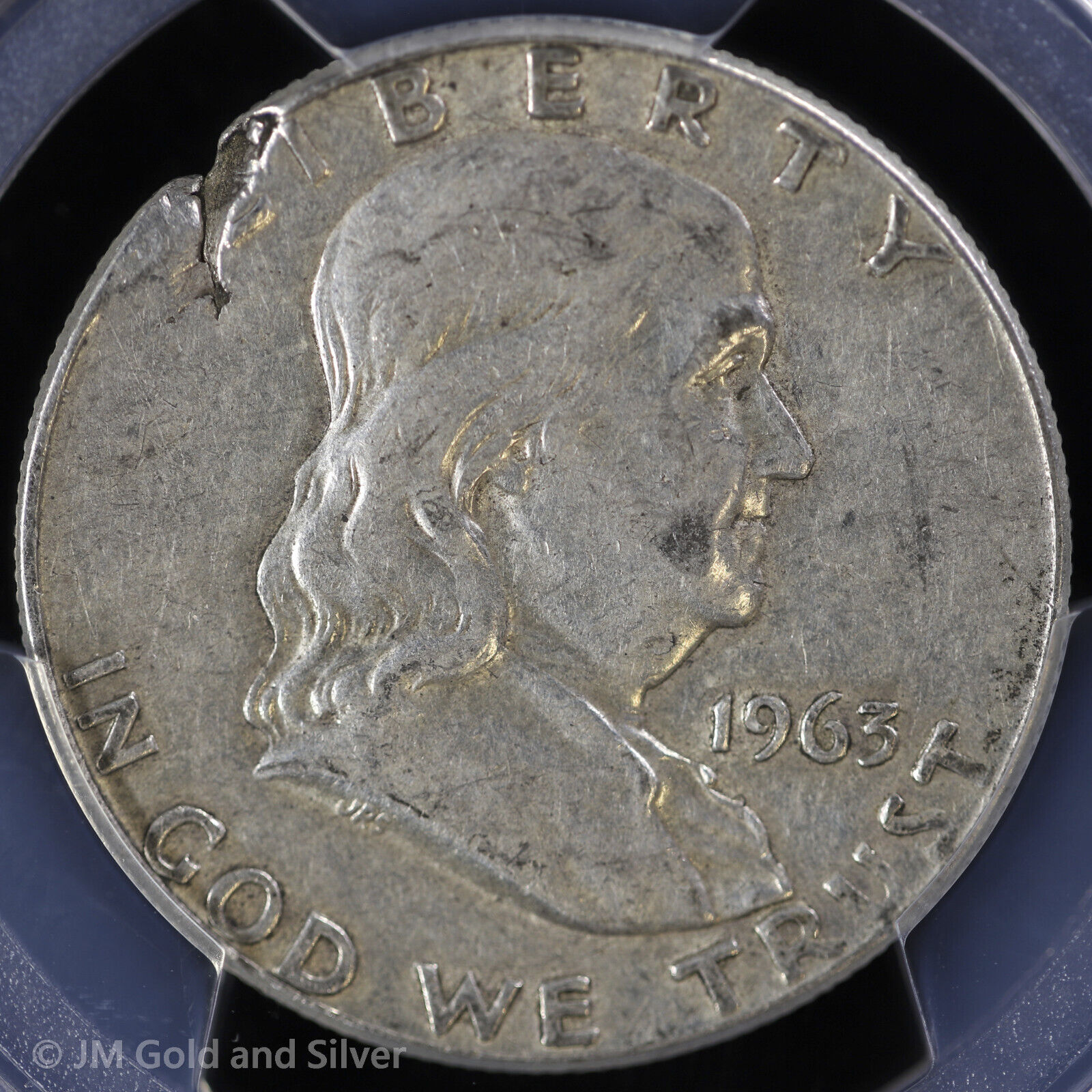 1963 50C Franklin Half Dollar PCGS VF 30 | Mint Error Defective Planchet