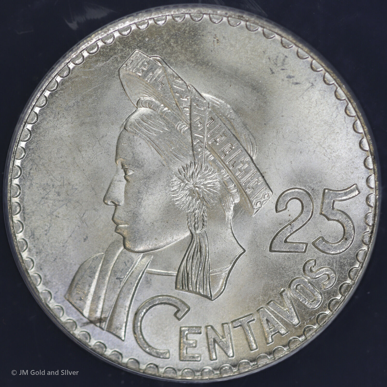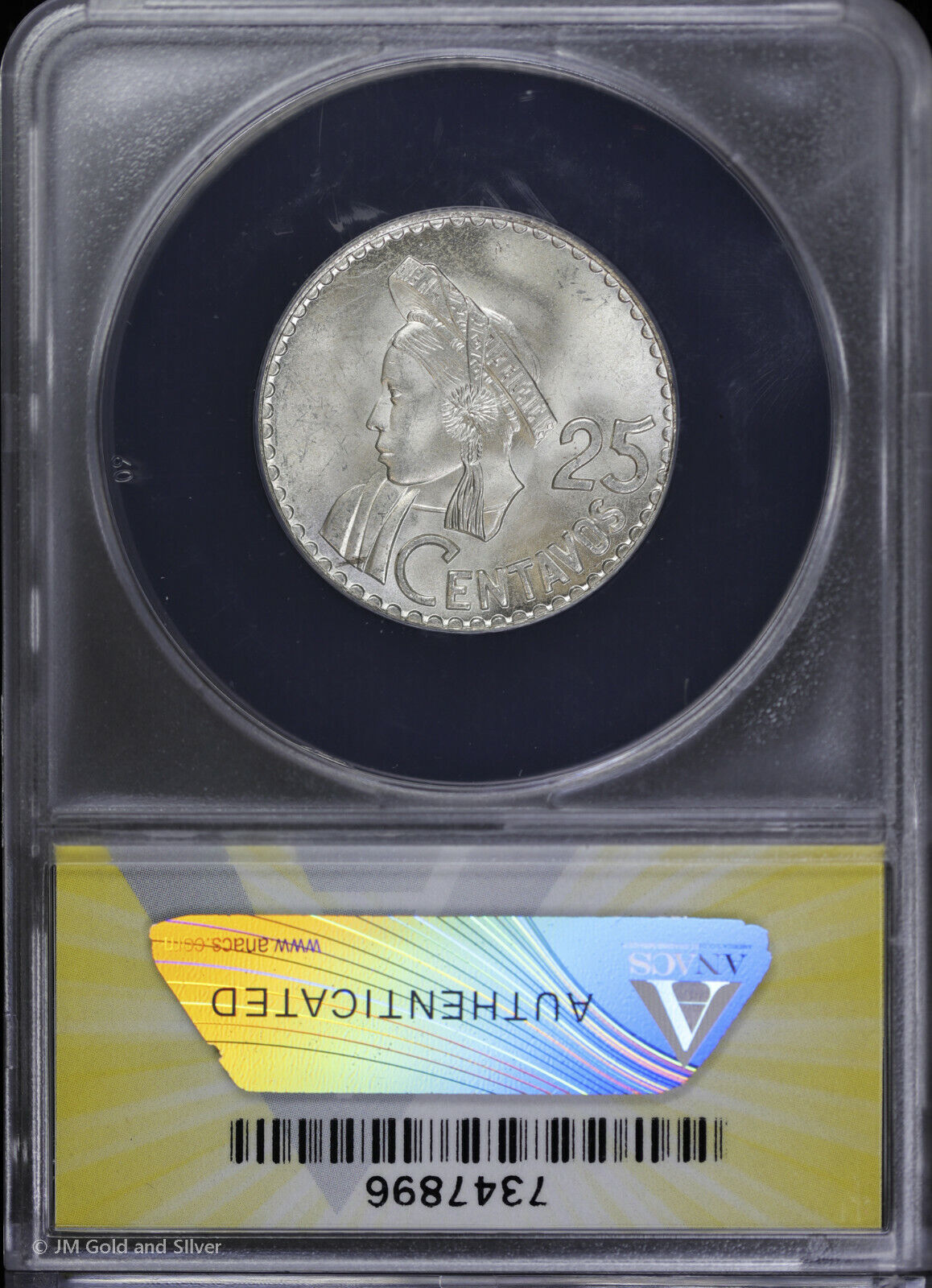 1963 Guatemala 25c Silver Quetzal Bird ANACS MS 67 | Uncirculated