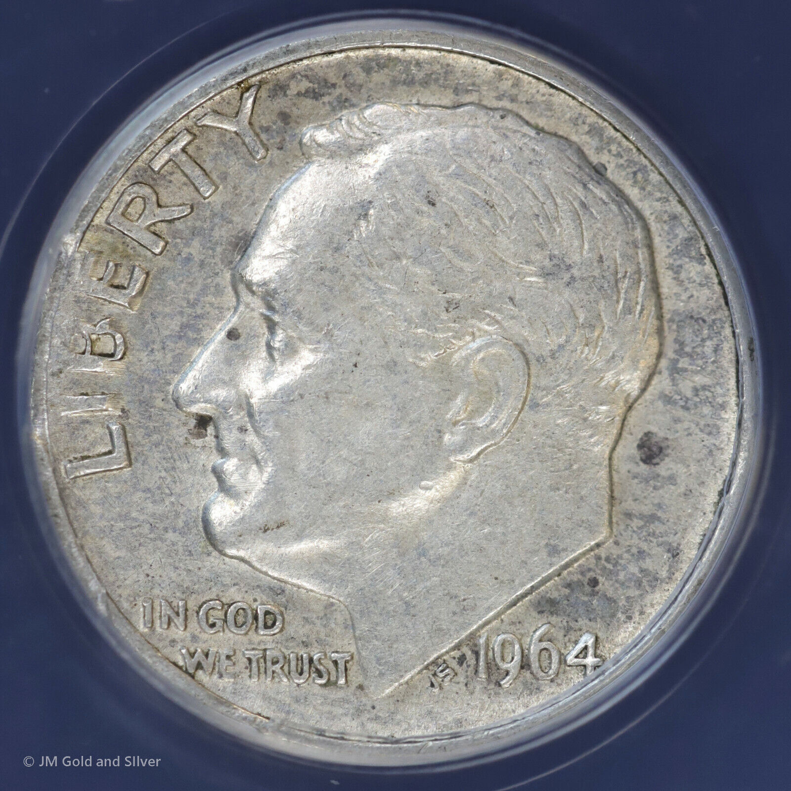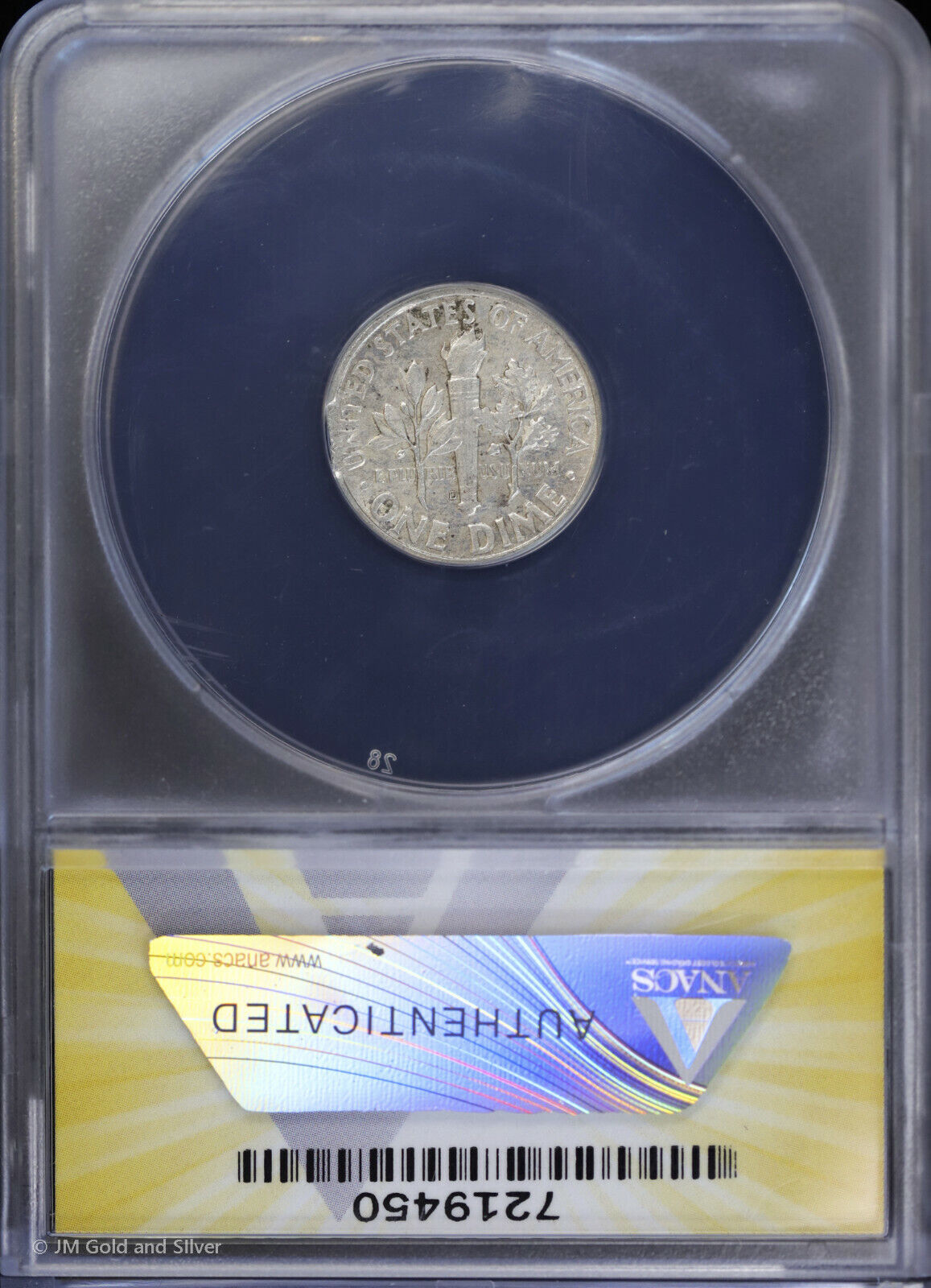 1964 D 10c Roosevelt Dime ANACS AU 58 | Curved Clip Weight 2.41 Grams
